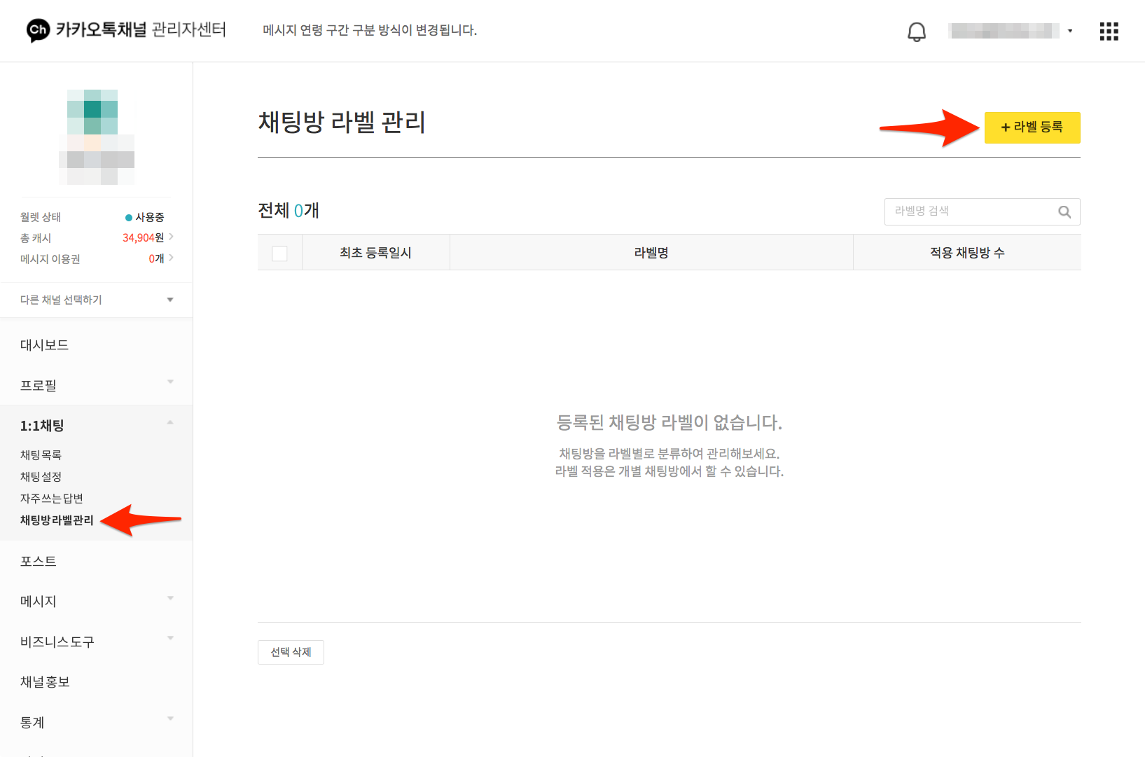 채팅방이 많아지면 라벨로 구분하지면 관리하기가 편합니다.