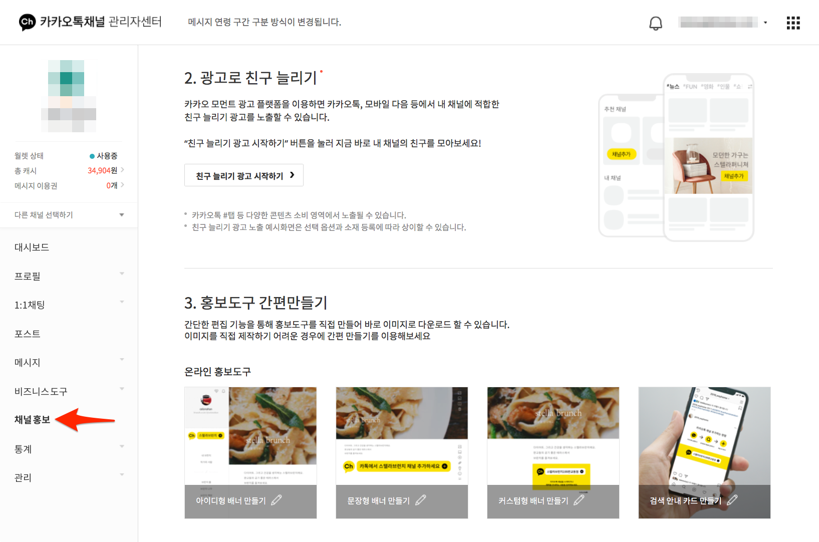 혹시나 사업 홍보나 마케팅에 관심이 있으시면 카카오톡 채널을 이용해 보시는 것도 좋습니다.