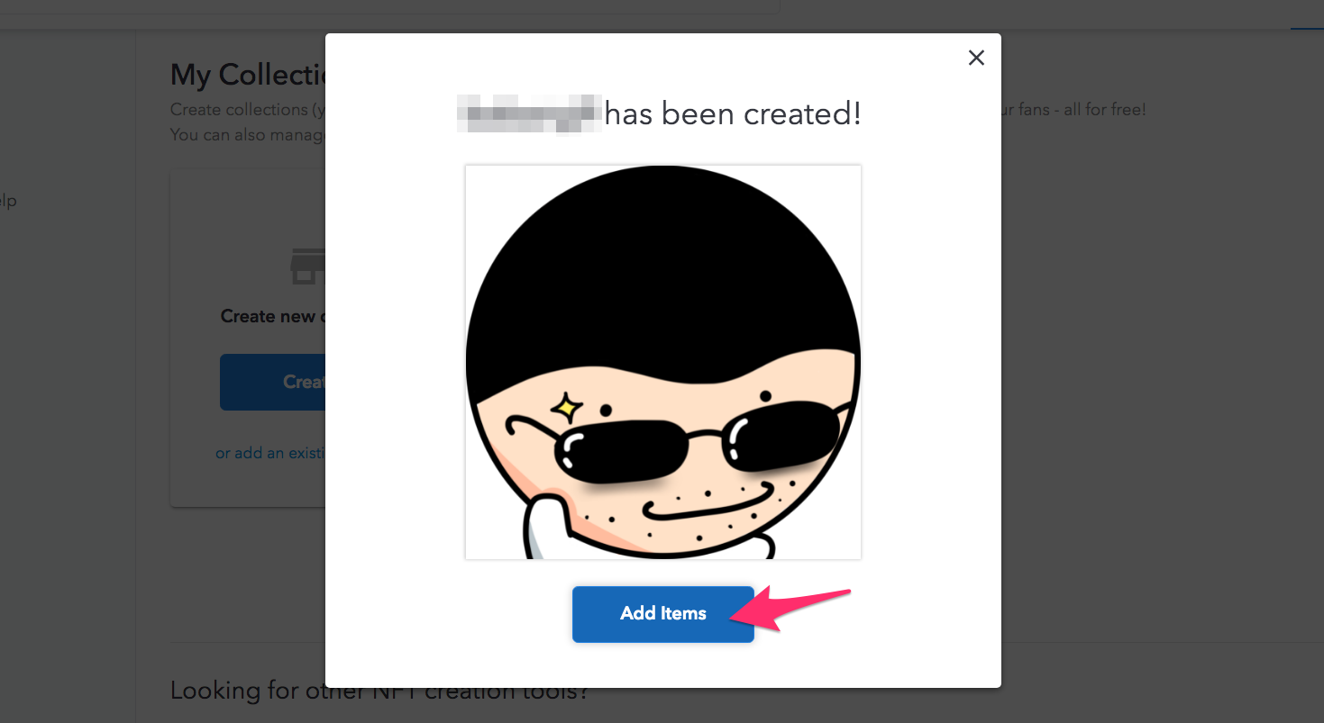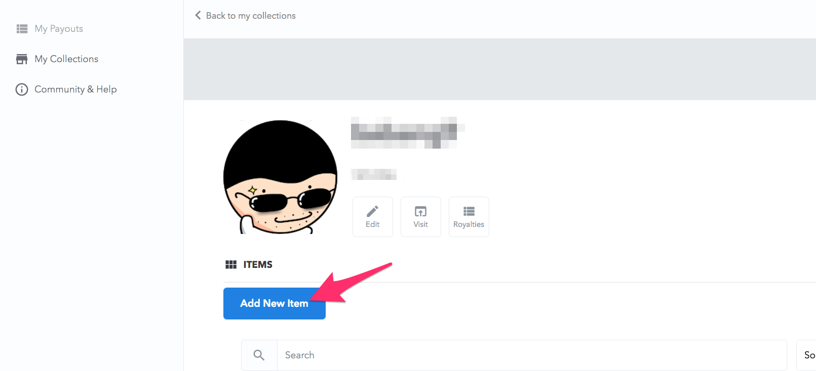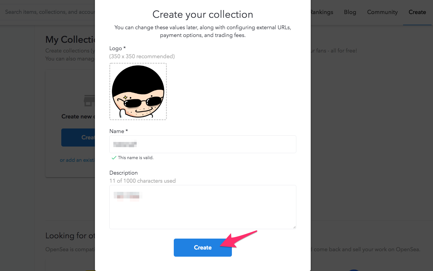 My Collections 페이지에서 새로운 collection를 만듭니다. Create 버튼을 선택합니다.