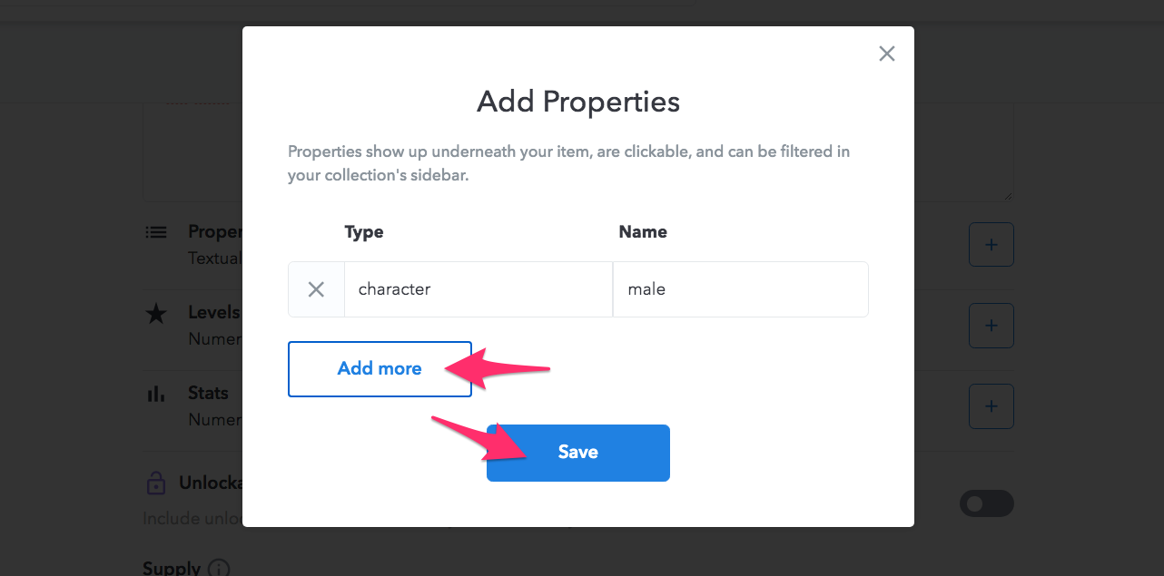 Properties를 선택한 후에 작품에 대한 키워드를 입력합니다.