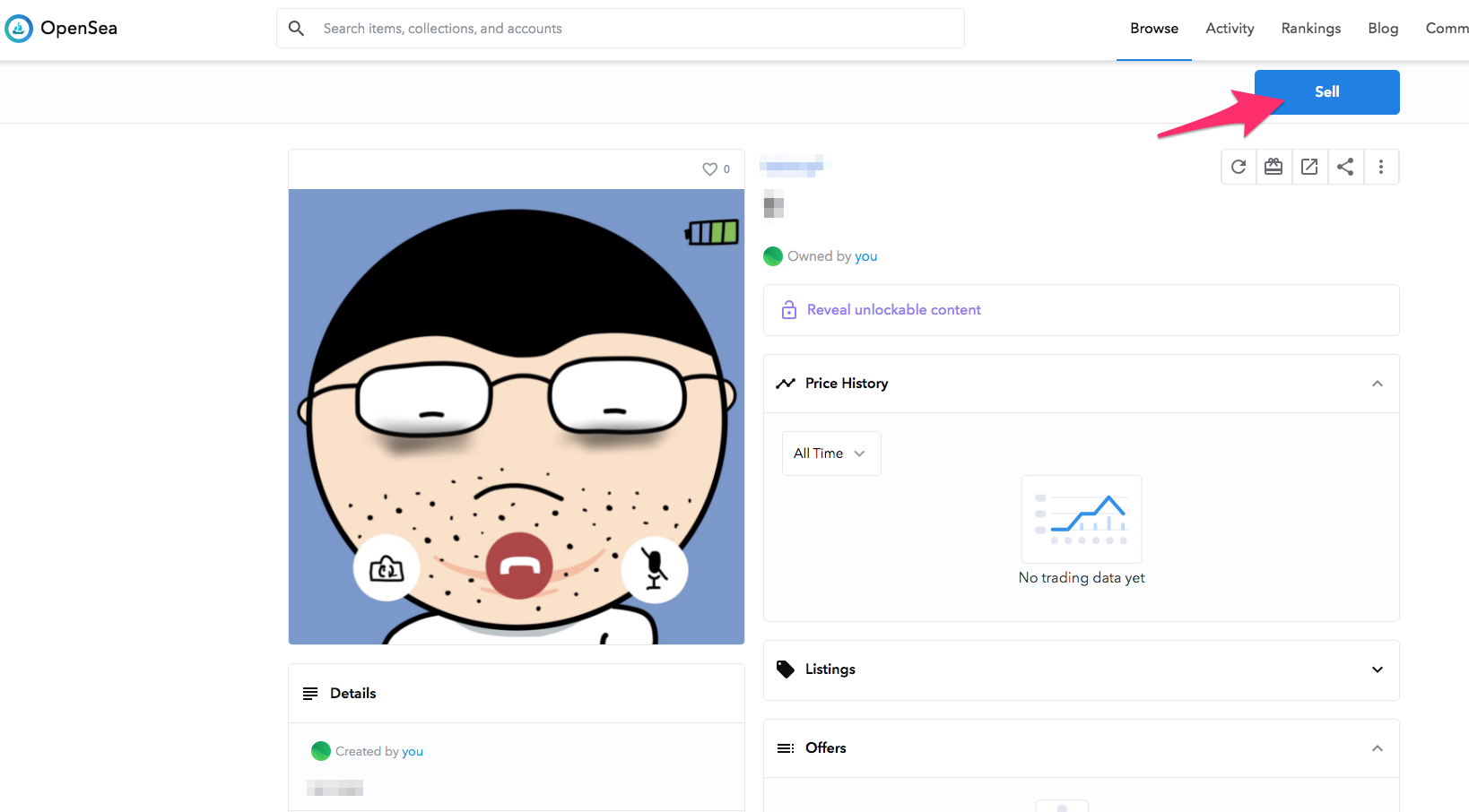이제 판매를 해 보겠습니다. 상단 오른쪽에 Sell 버튼을 선택합니다.