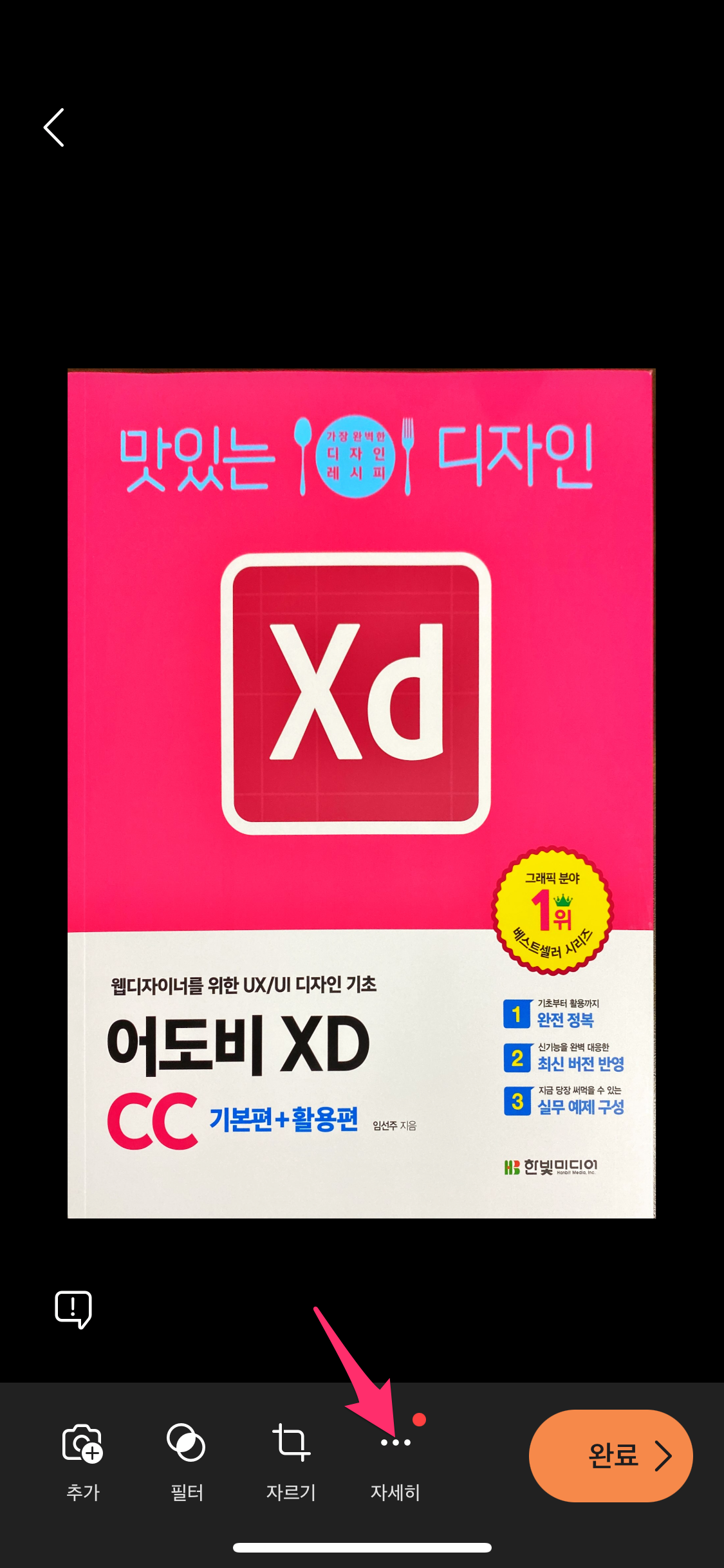 완성된 이미지에서 하단에 조정 메뉴가 나옵니다. 우선 자세히를 선택합니다.