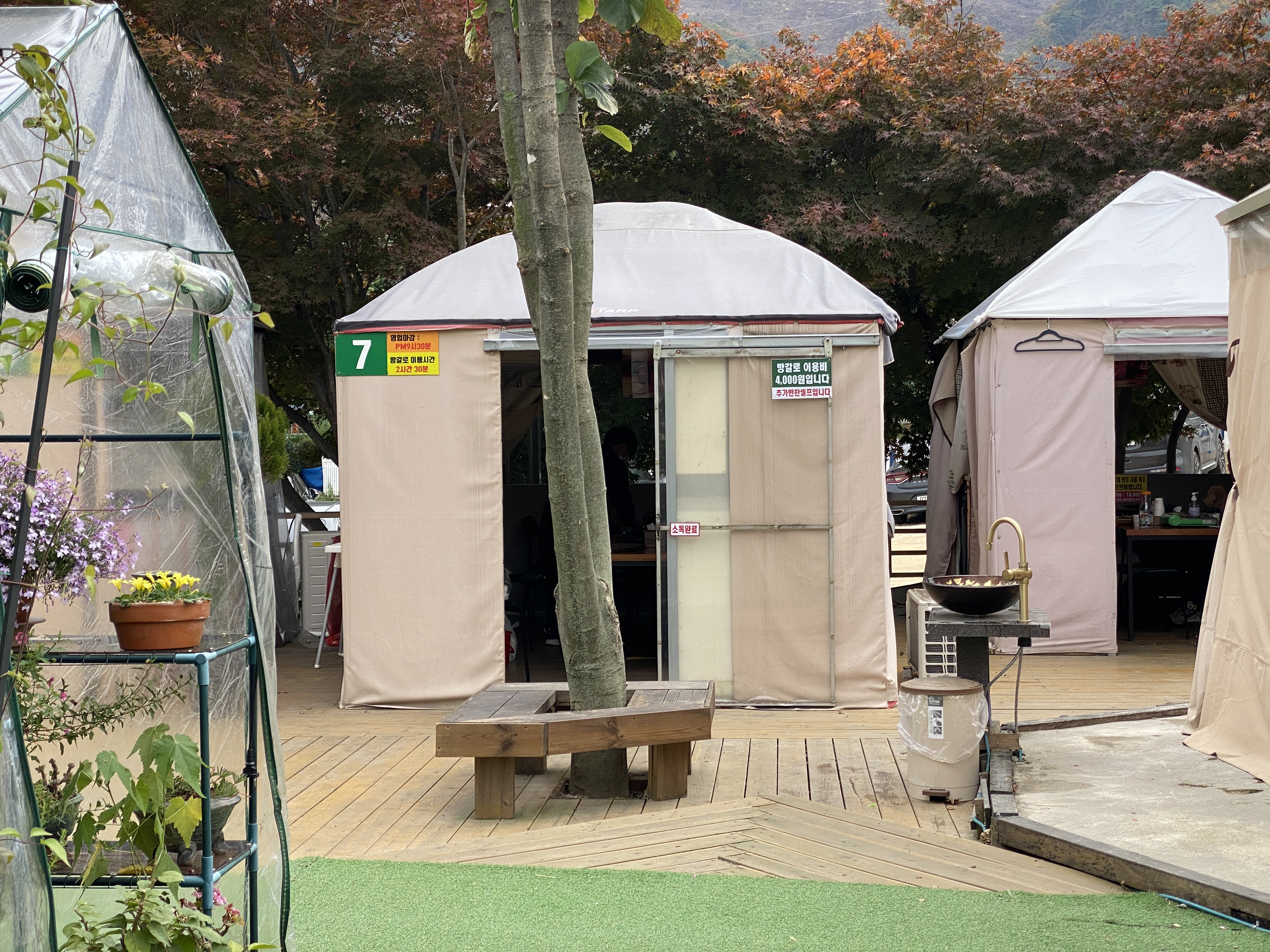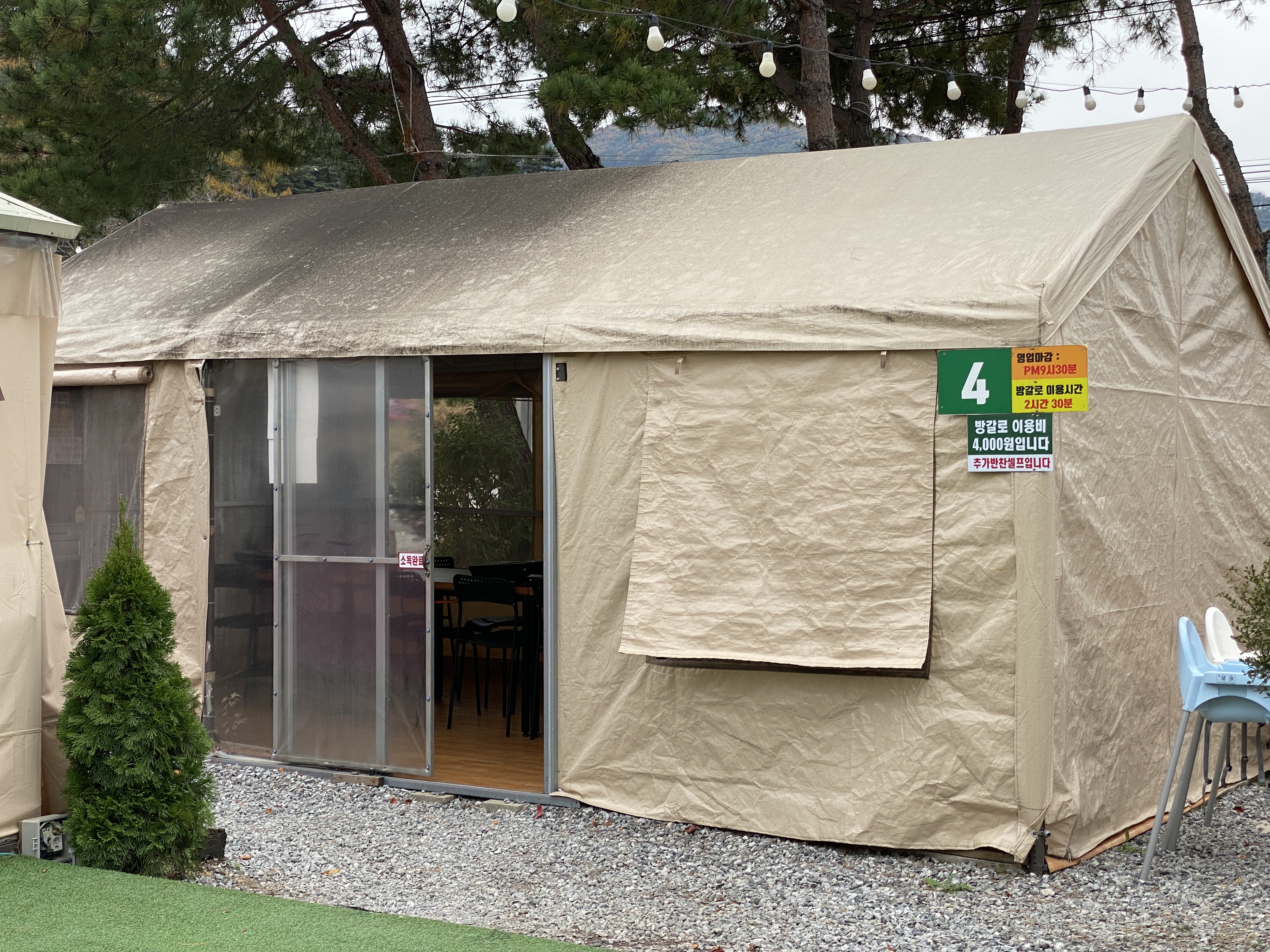 야외 텐트입니다. 아.... 그리고 텐트 사용료는 따로 4,000원입니다.