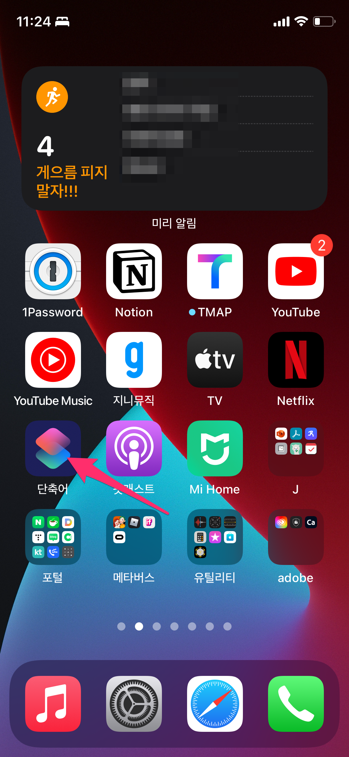 목록 제일 하단쯤으로 내려가면 아까 등록한 단축어 지갑앱을 선택합니다.