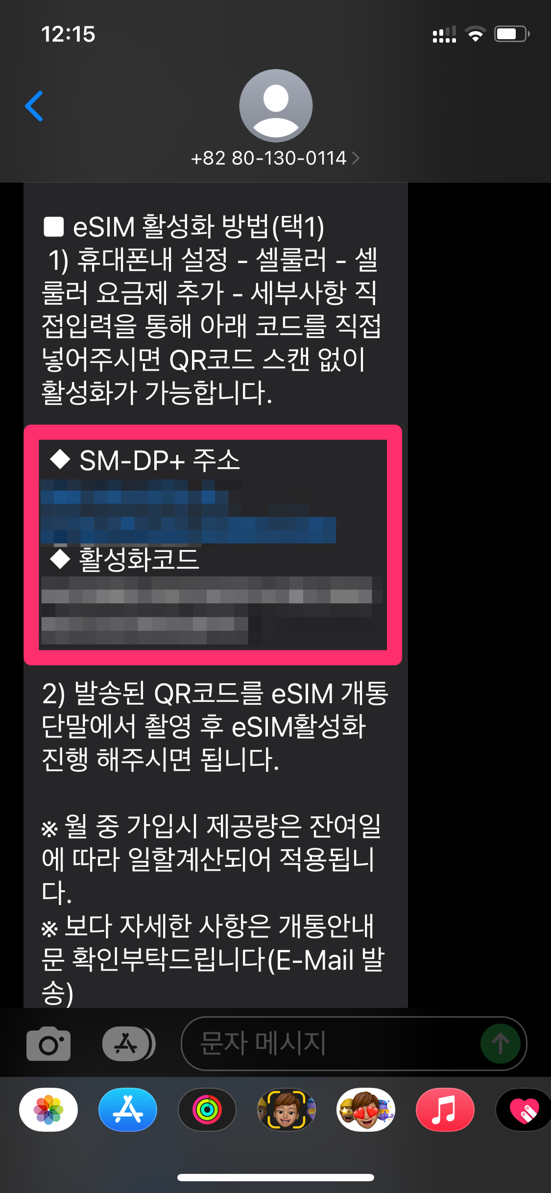 eSIM 활성화 방법은 QR코드와 직접 입력하는 방법인 2가지입니다.