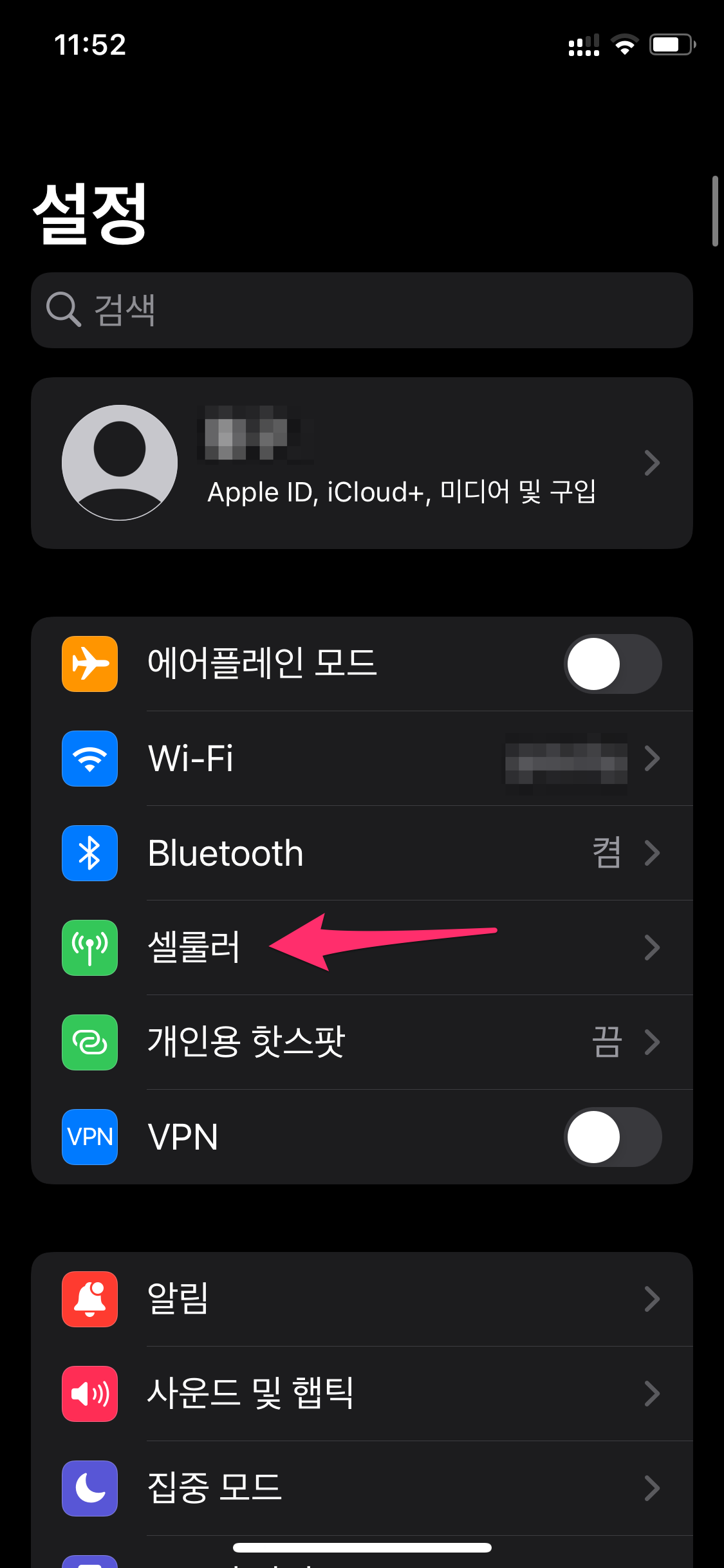 아이폰 [설정] - [셀룰러]에서 추가된 번호를 선택합니다.
