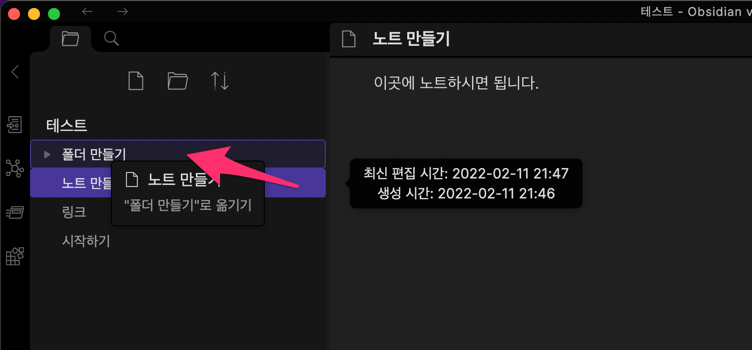 옵시디안 작업의 가장 기본인 노트와 폴더를 만들어 보겠습니다.