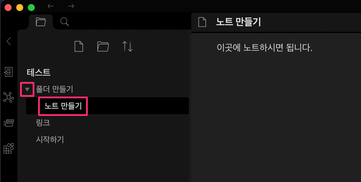 옵시디안 작업의 가장 기본인 노트와 폴더를 만들어 보겠습니다.