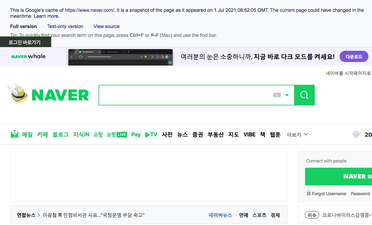 최근 검색한 사이트를 보여줍니다. 가령, 네이버를 검색했다면 최근에 캐시 된 네이버 모습을 보여줍니다.