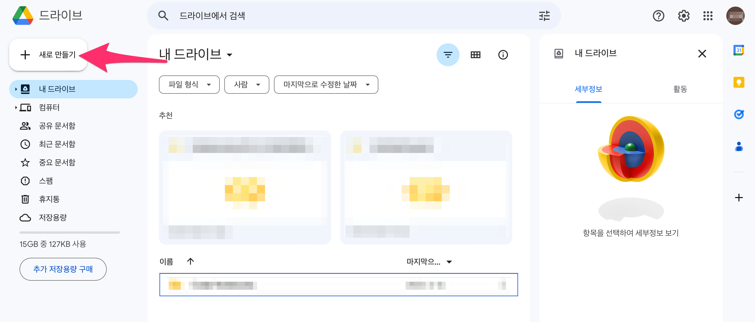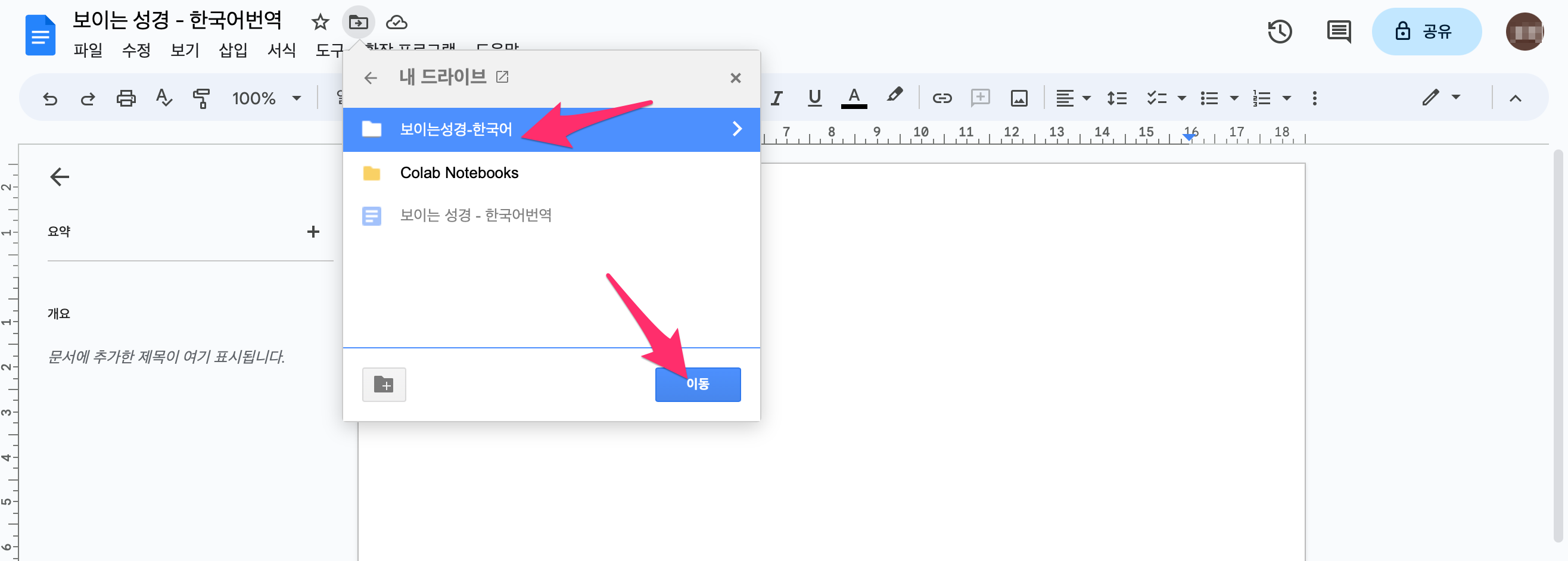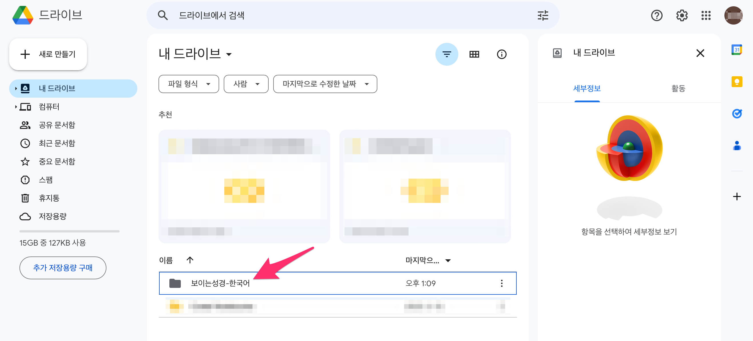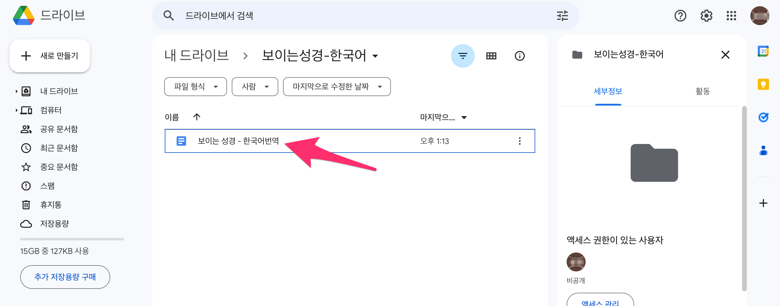 상단에 드라이브에 저장됨이라고 표시되면 저장 완료되었습니다.
