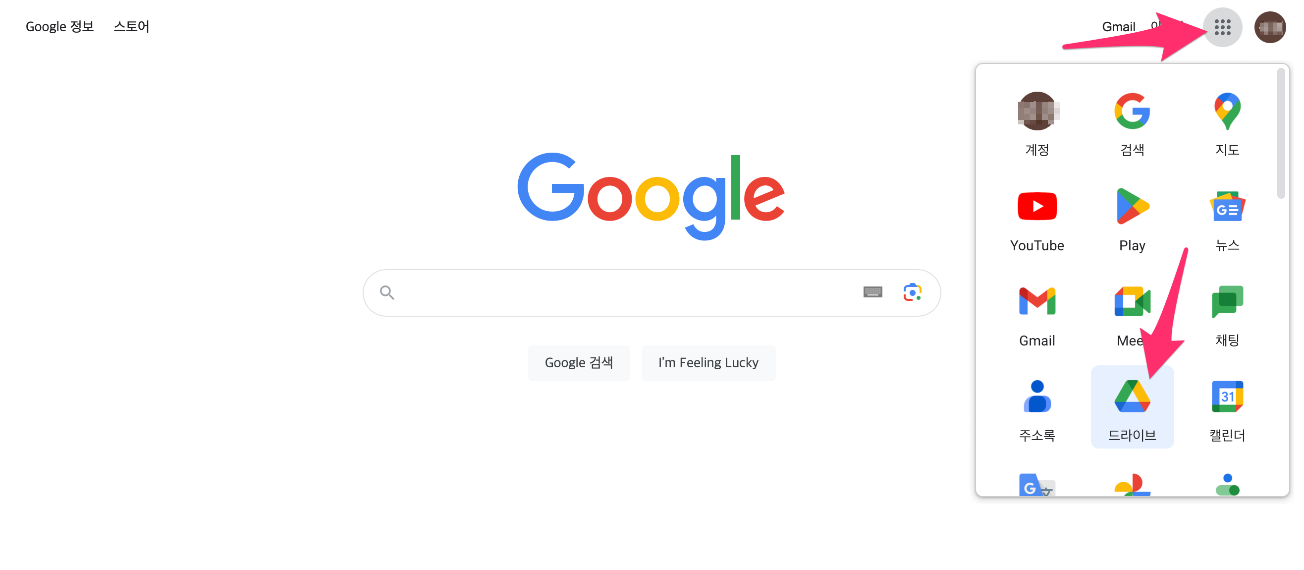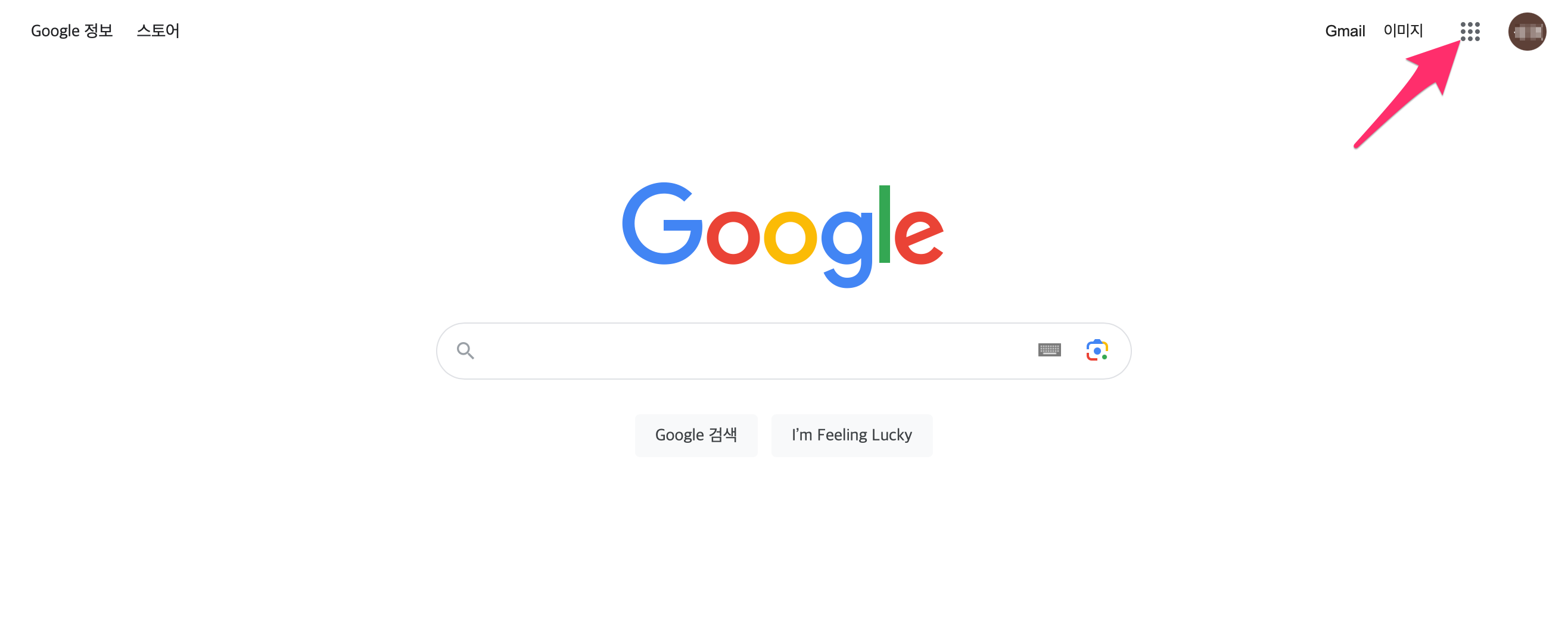 구글 회원 및 로그인을 한 후에 오른쪽 상단에 구글 앱을 선택합니다.
