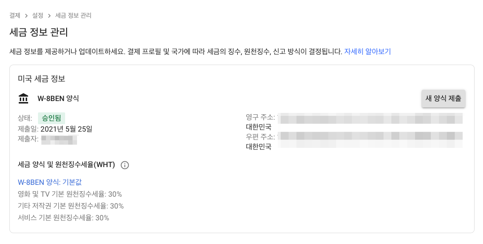 하지만 미국 세금정보(저는 미국에 안 살아요)를 입력하시면 미국에서만 발생되는 수익의 30%를 세금으로 내야 합니다.