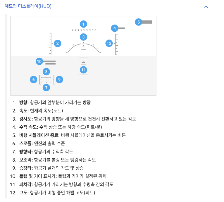 비행기 헤드업 디스플레이(HUD)가 나옵니다.