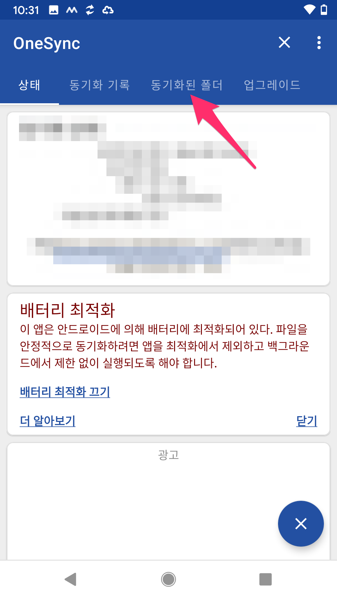 그리고 상단에 동기화된 폴더 메뉴로 갑니다.
