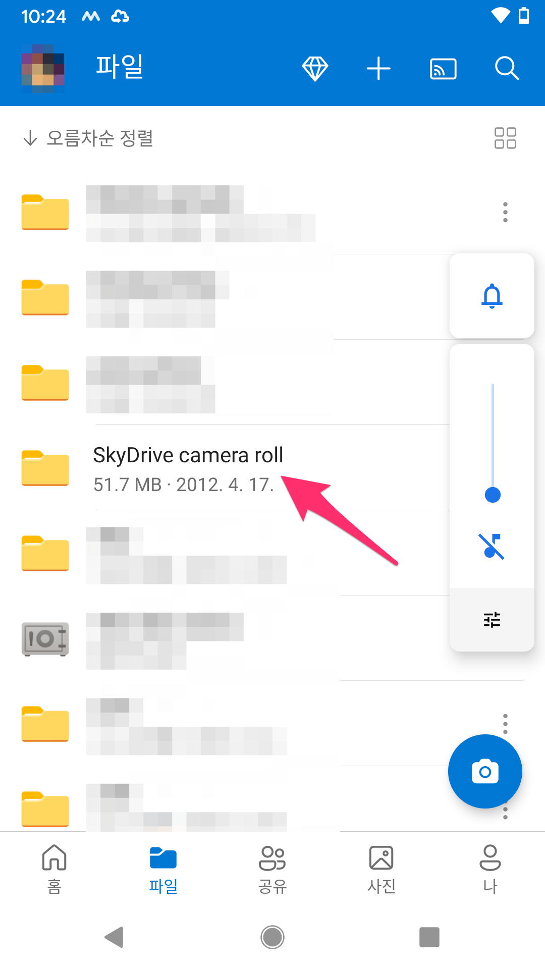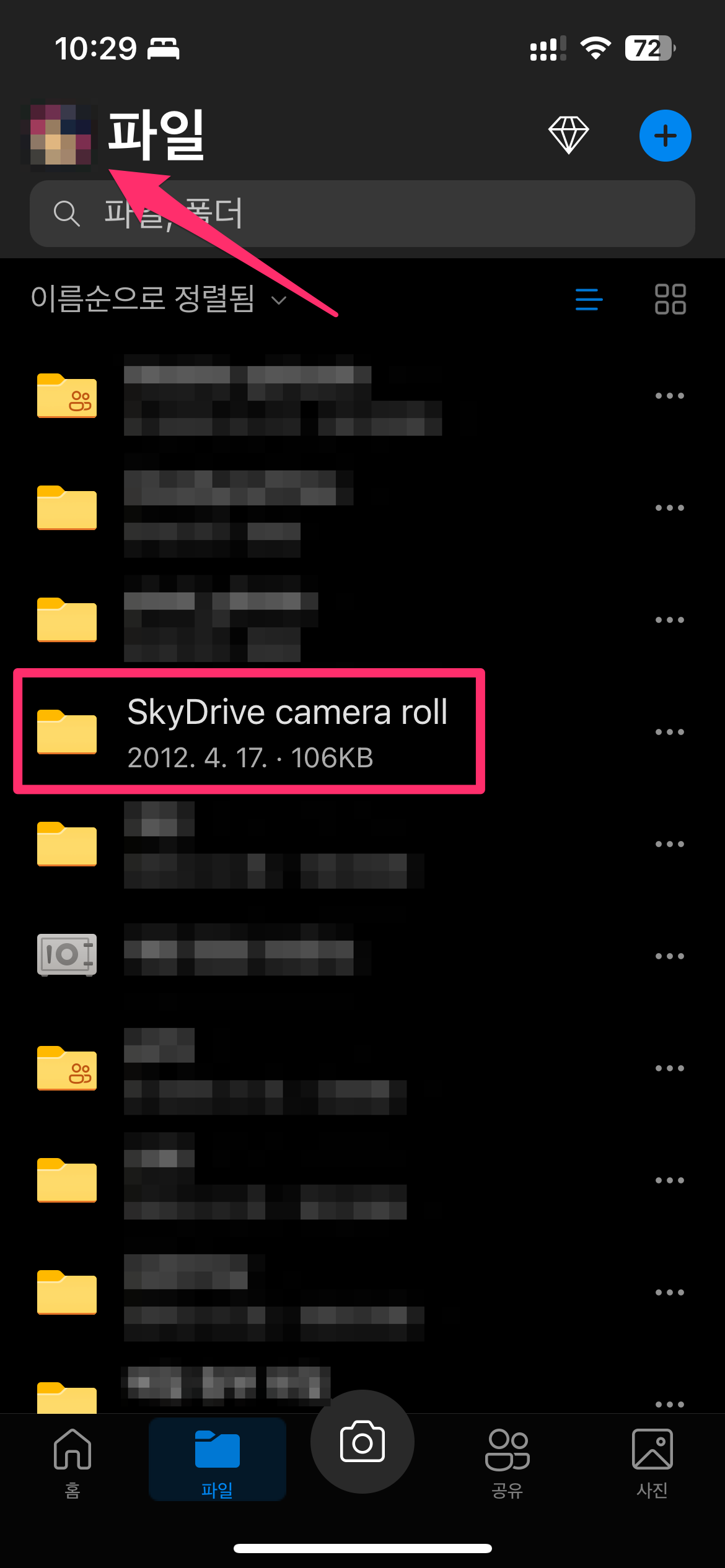 SkyDrive camera roll 폴더를 확인합니다.