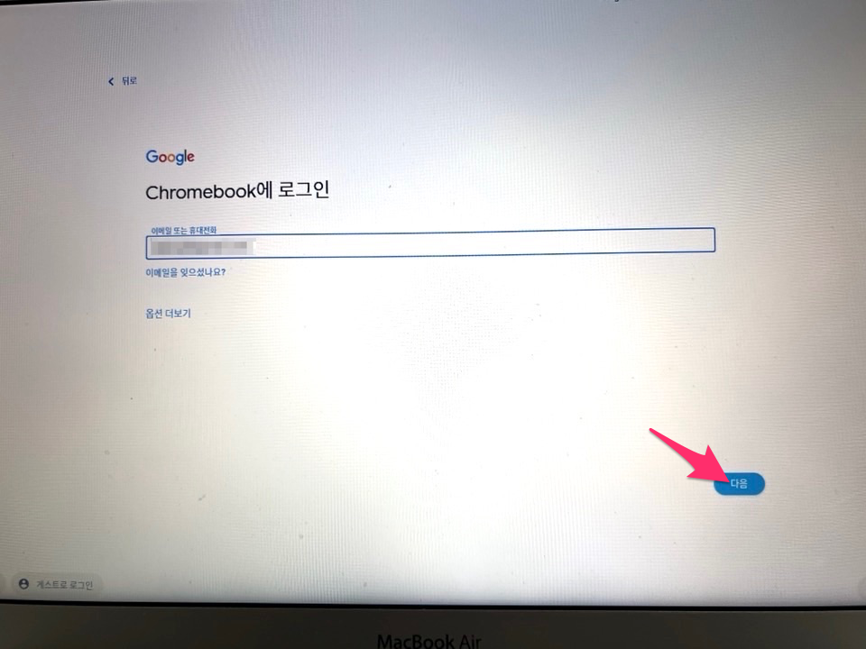 구글 이메일을 입력 후에 다음 버튼을 선택합니다.