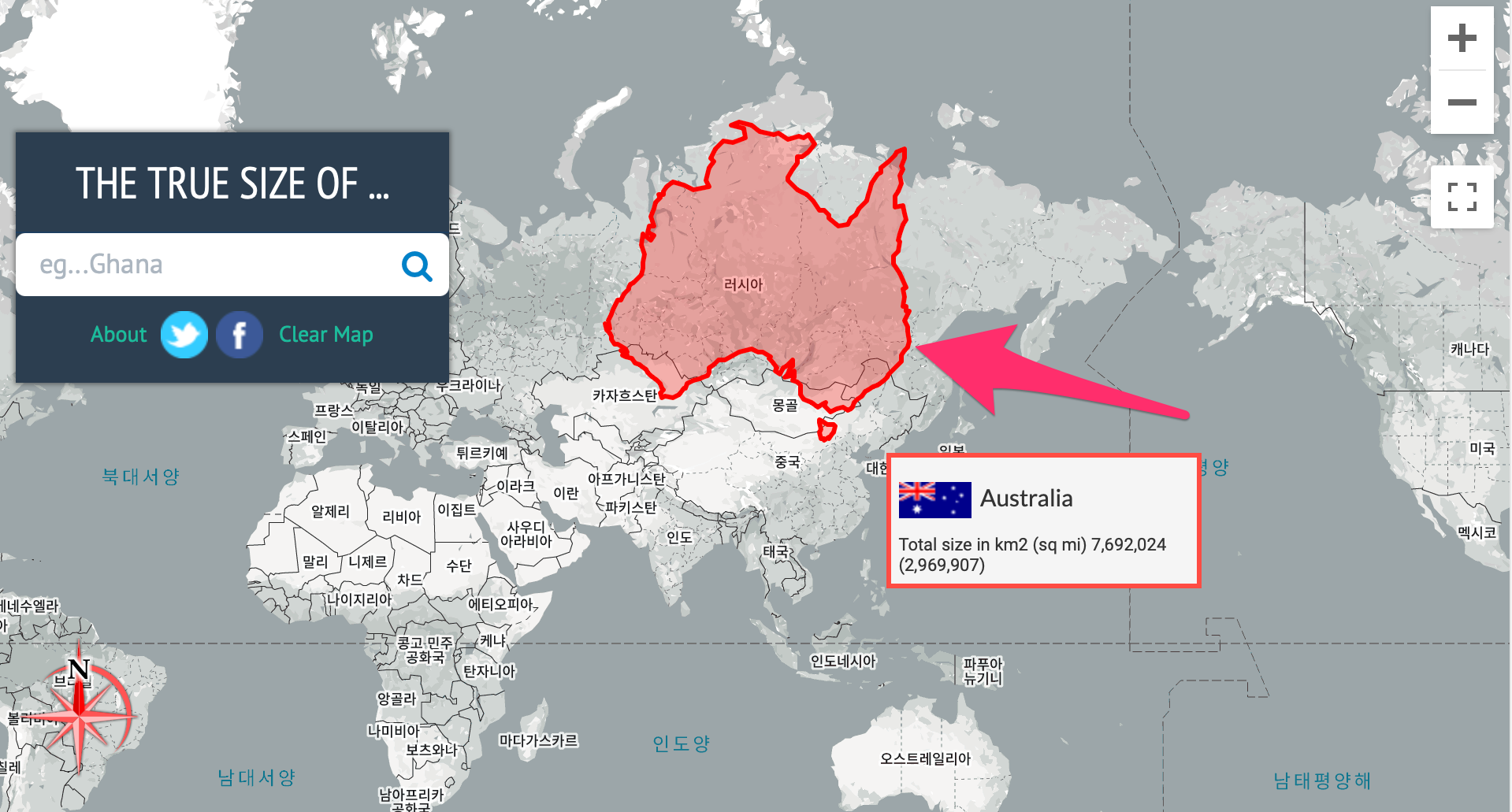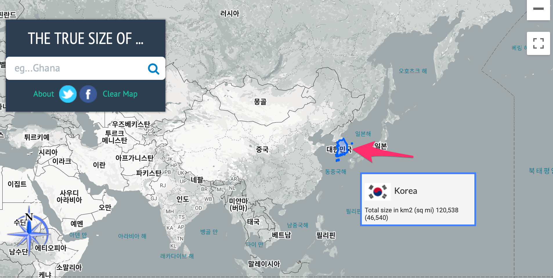 오늘은 나라 크기를 비교하는 사이트를 소개하려고 합니다.