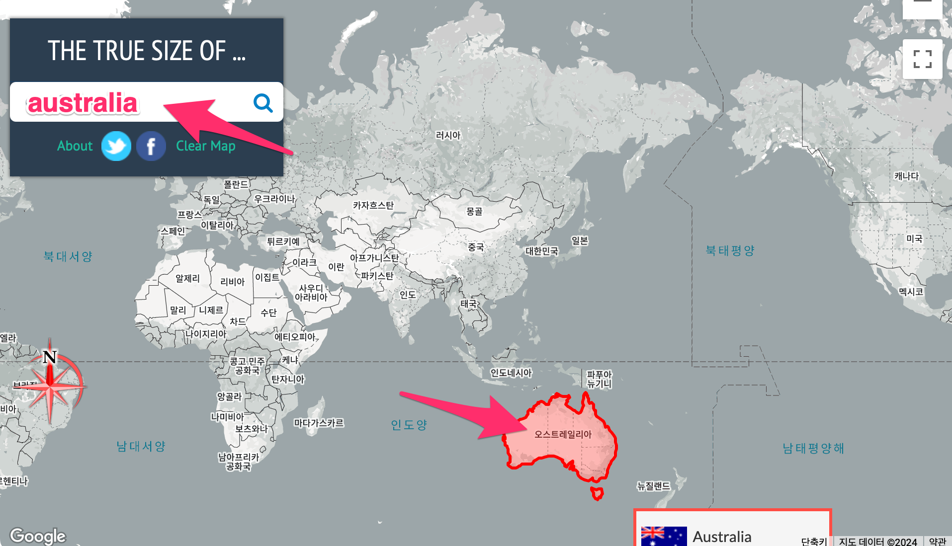 오늘은 나라 크기를 비교하는 사이트를 소개하려고 합니다.