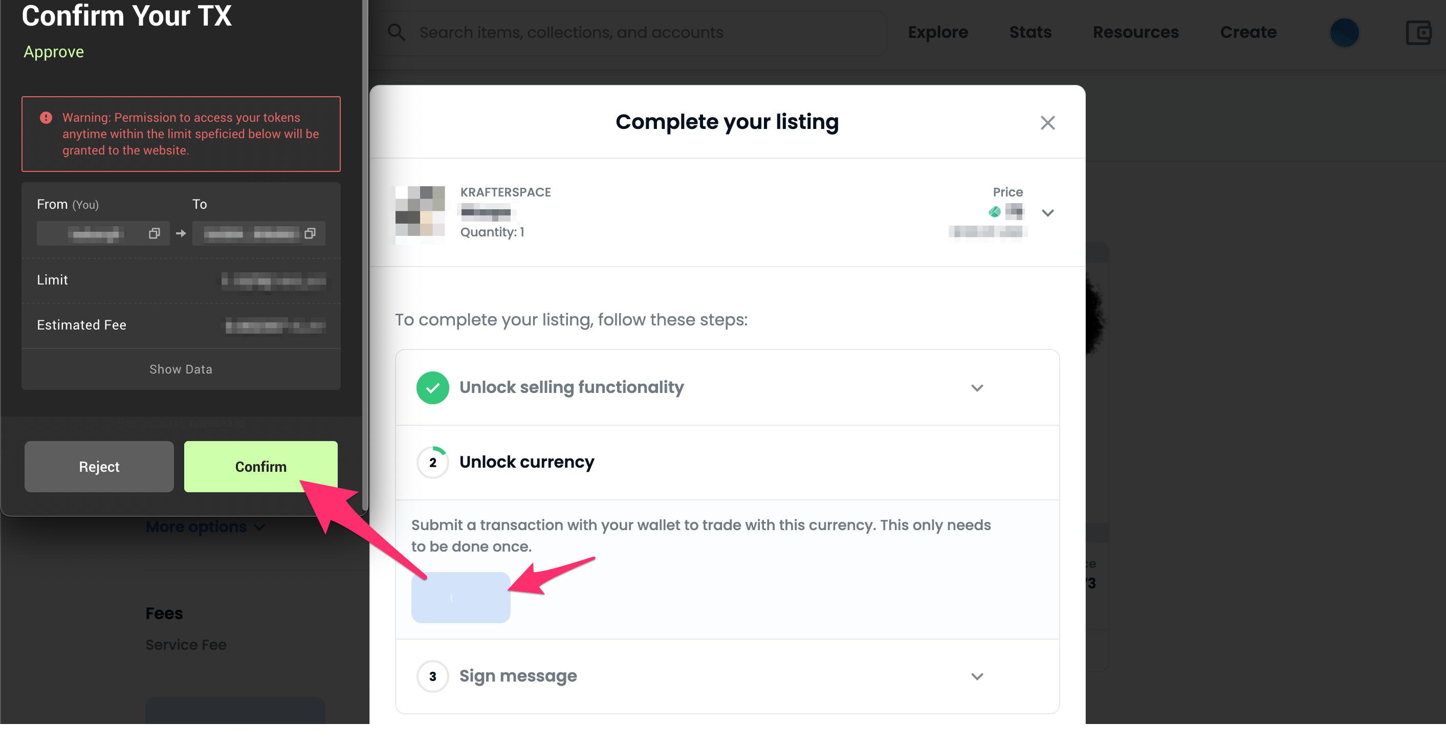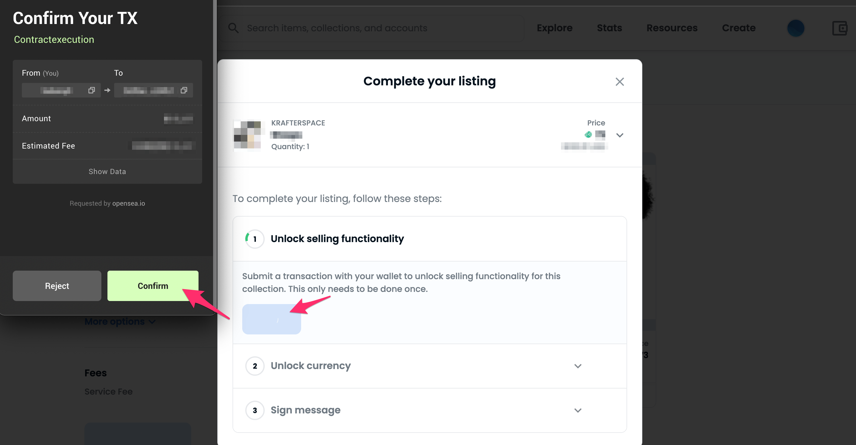 5. OpenSea 마켓에서 로그인하여 Krafterspace에서 만든 NFT를 판매 신청