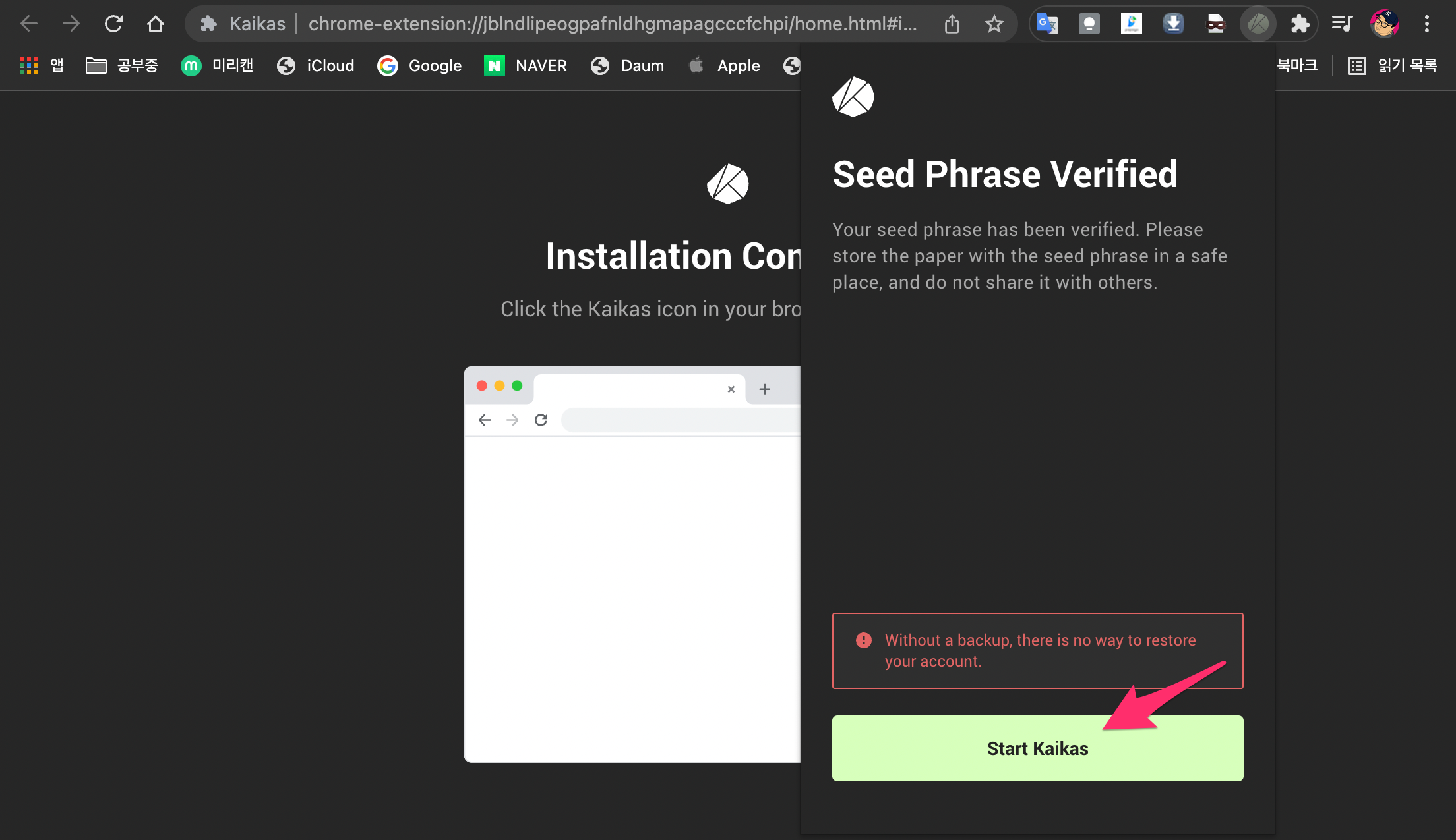 모든 과정의 핵심인 Kaikas 지갑을 만들어 보겠습니다.