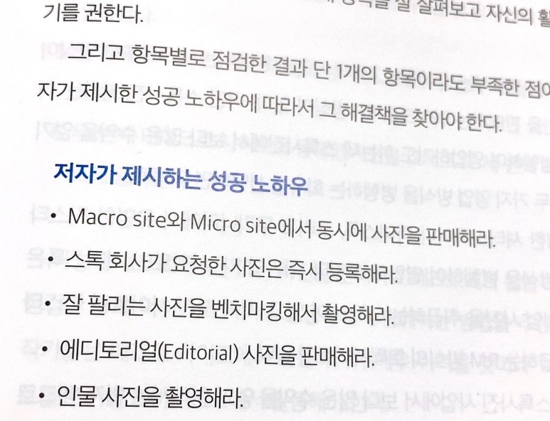 마지막 부분에는 저자의 성공 노하우도 설명하여 많은 사람들이 중요하게 생각할 부분도 친절히 설명하고 있습니다. 다 읽고 나고 직접 스톡회사에 제출해 보니 마지막 부분에 '저자가 제시하는 성공 노하우' 부분이 정말 좋은 내용이라는 것을 알게 되었습니다.