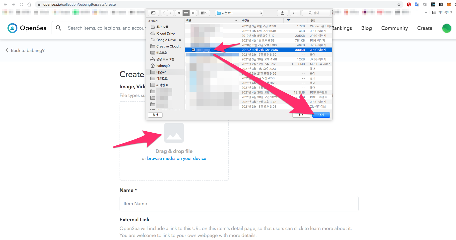 이제 세계 최대 NFT 마켓인 opensea에 접속하여 가입하고 작품을 팔아보겠습니다.