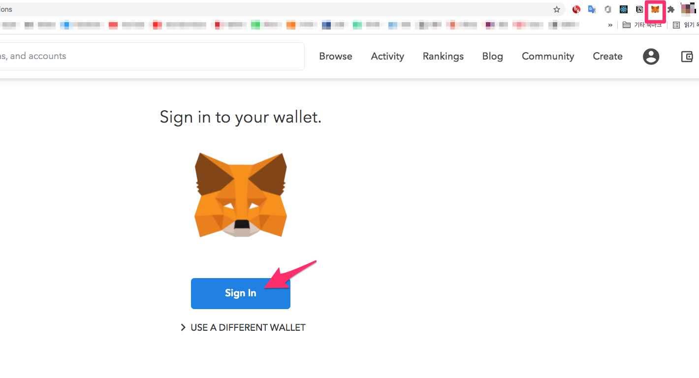 그러면 metamask 지갑으로 로그인하라고 합니다. Sign In 버튼을 선택합니다.