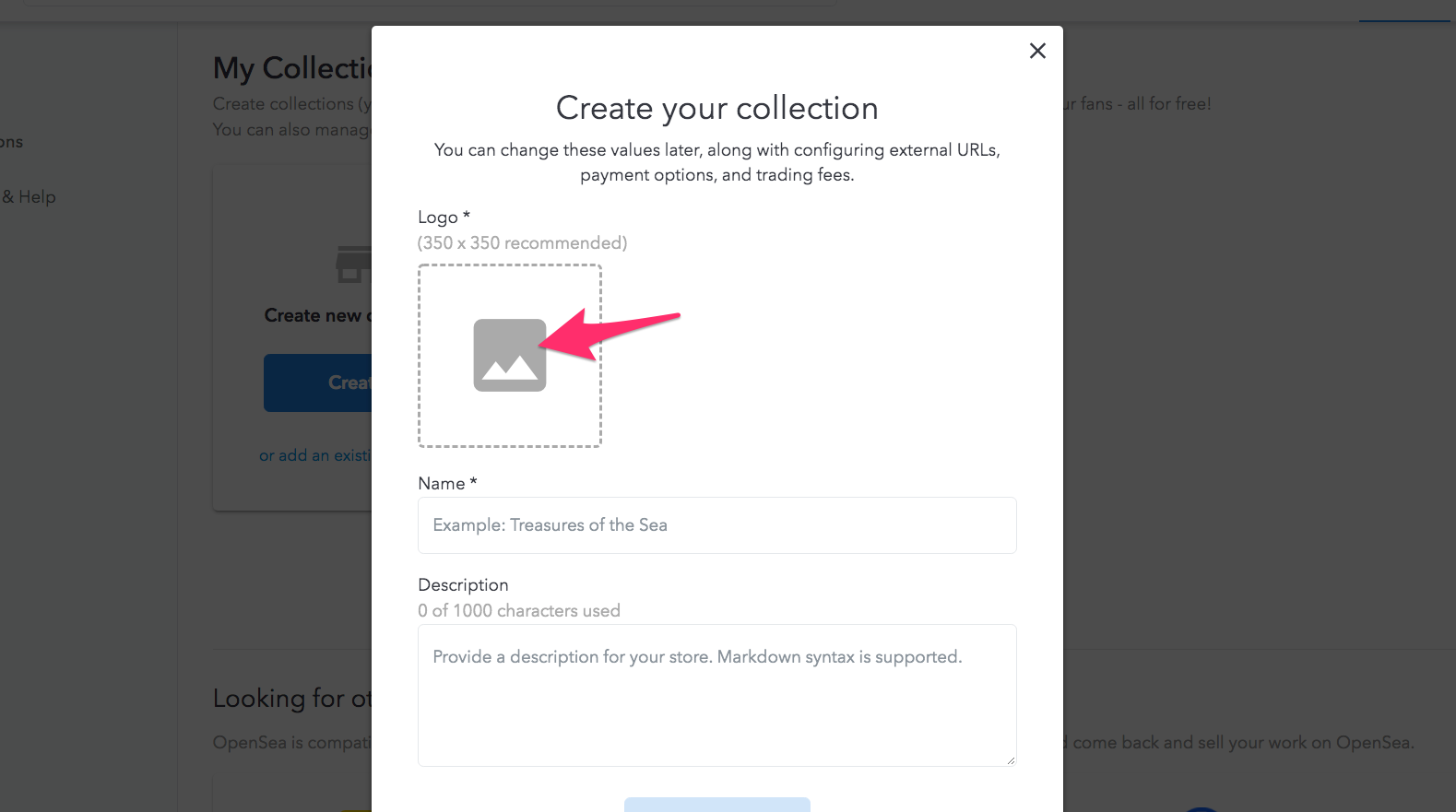 My Collections 페이지에서 새로운 collection를 만듭니다. Create 버튼을 선택합니다.