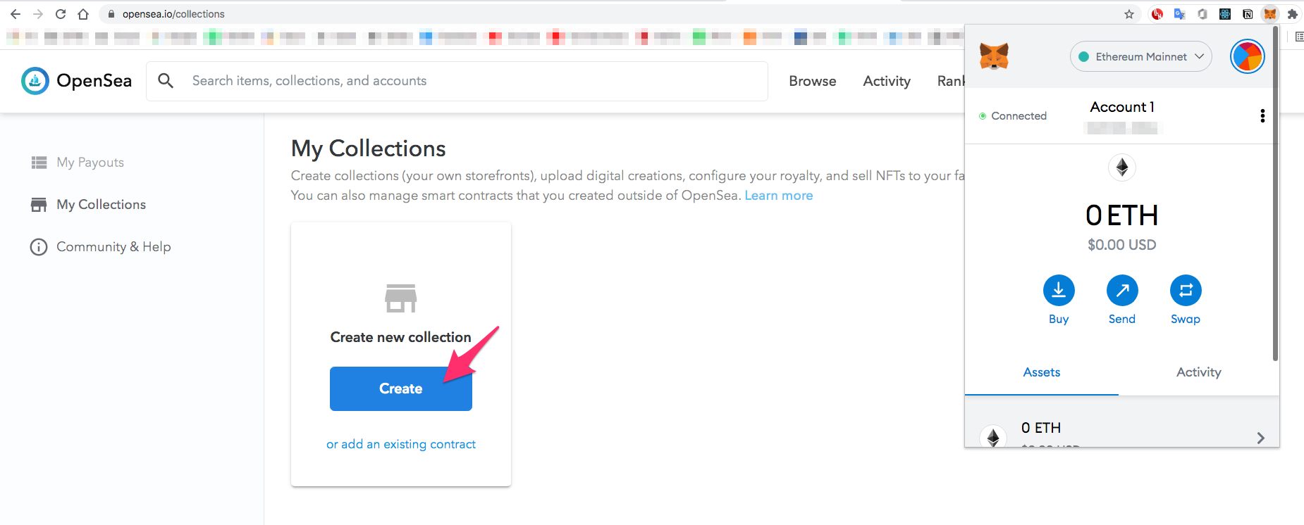 NFT 마케에 내 작품을 팔아보기 전에 필요한 것은 metamask 지갑입니다.