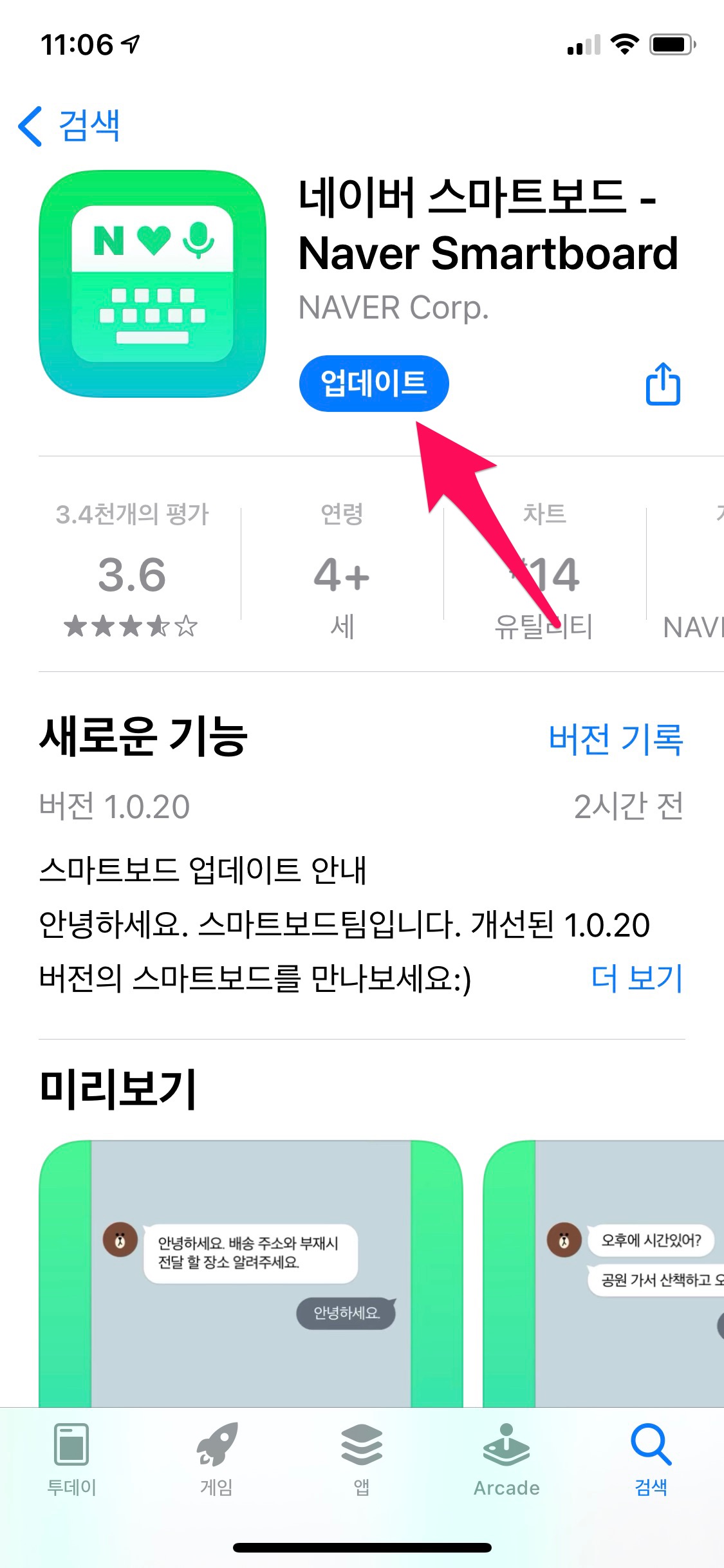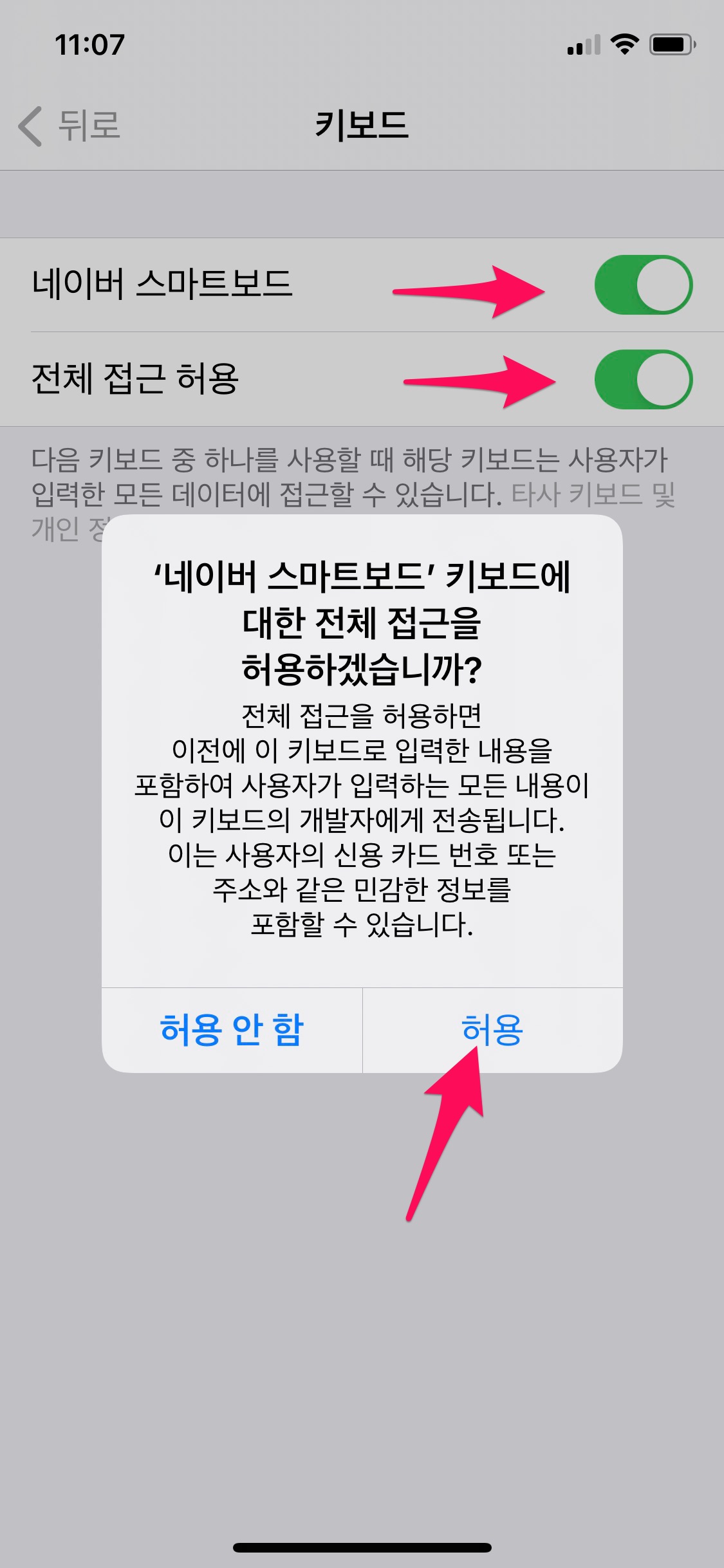 네이버 스마트보드 키보드에 대한 전체 접근을 허용합니다.