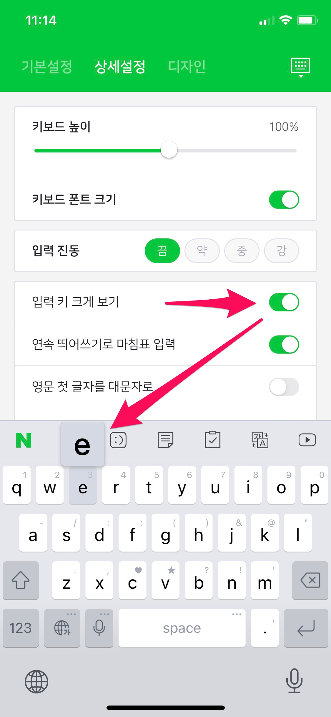 - 입력 키 크게 보기 - 오른쪽 이미지처럼 입력을 하면 입력되는 키가 크게 보임