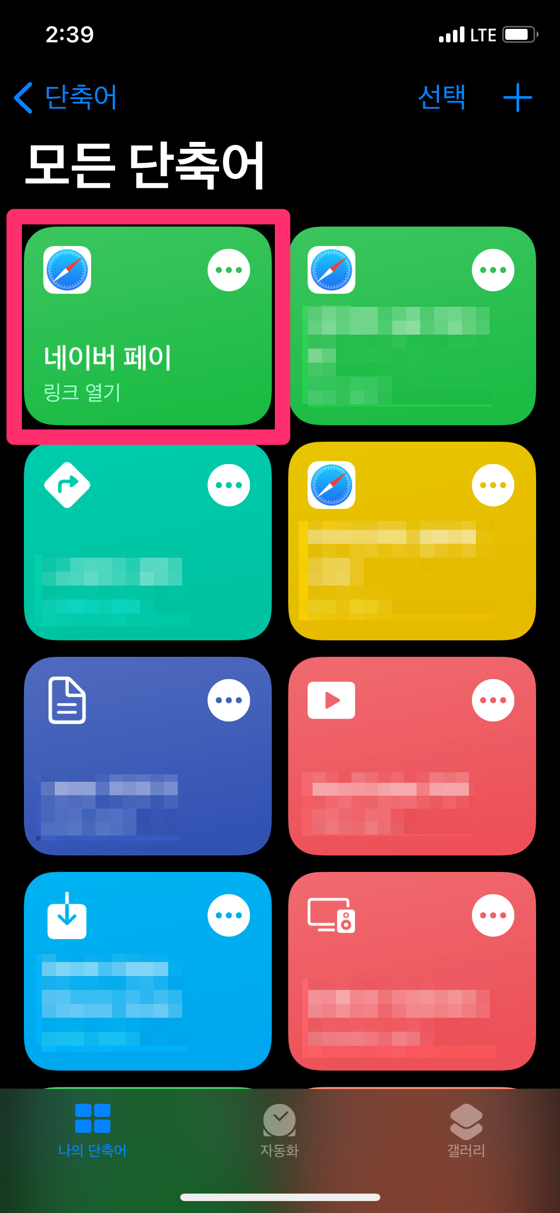 마지막으로 단축어 목록으로 돌아가서 방금 제작한 네이버 페이 단축어를 확인합니다.