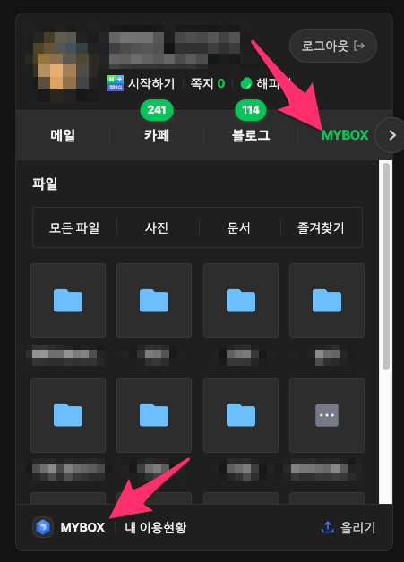 네이버 MYBOX에서 한글 파일이나 MS오피스(워드, 엑셀, 파워포인트) 파일 올리기 합니다.