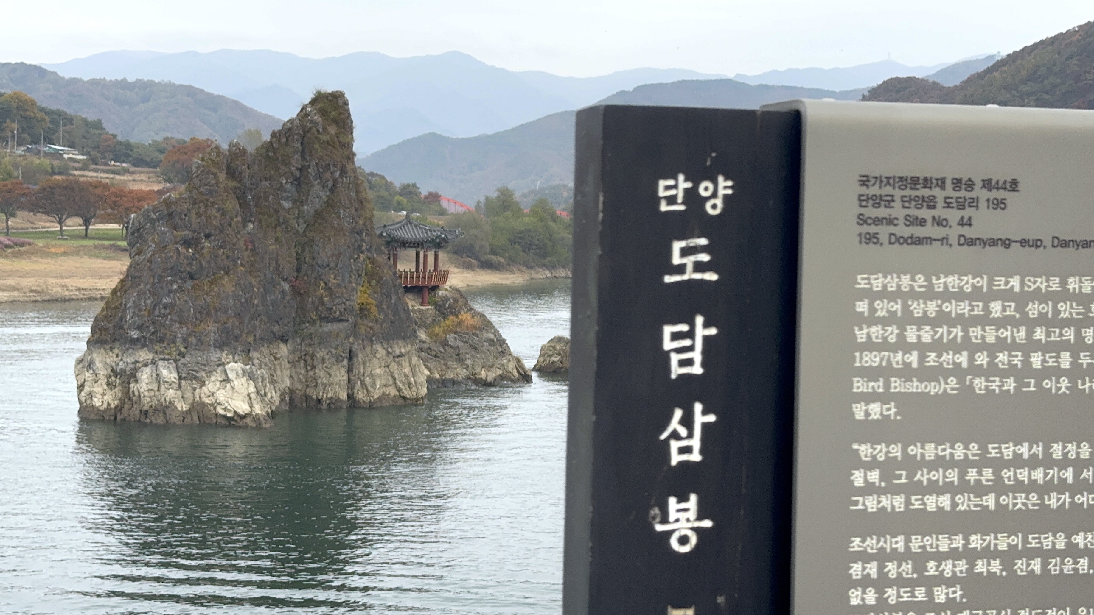 도담삼봉은 단양팔경 중 하나로, 남한강 위에 우뚝 솟은 세 개의 봉우리가 인상적인 곳입니다.