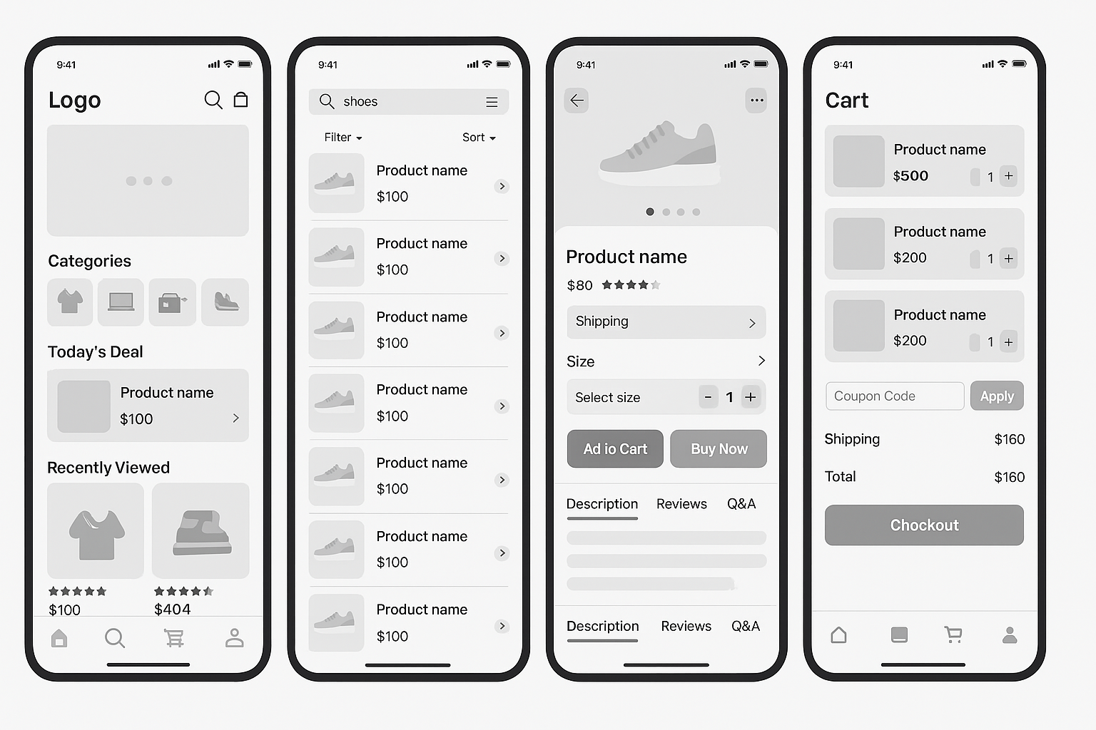"ChatGPT야, 이커머스 앱 와이어프레임 그려줘."