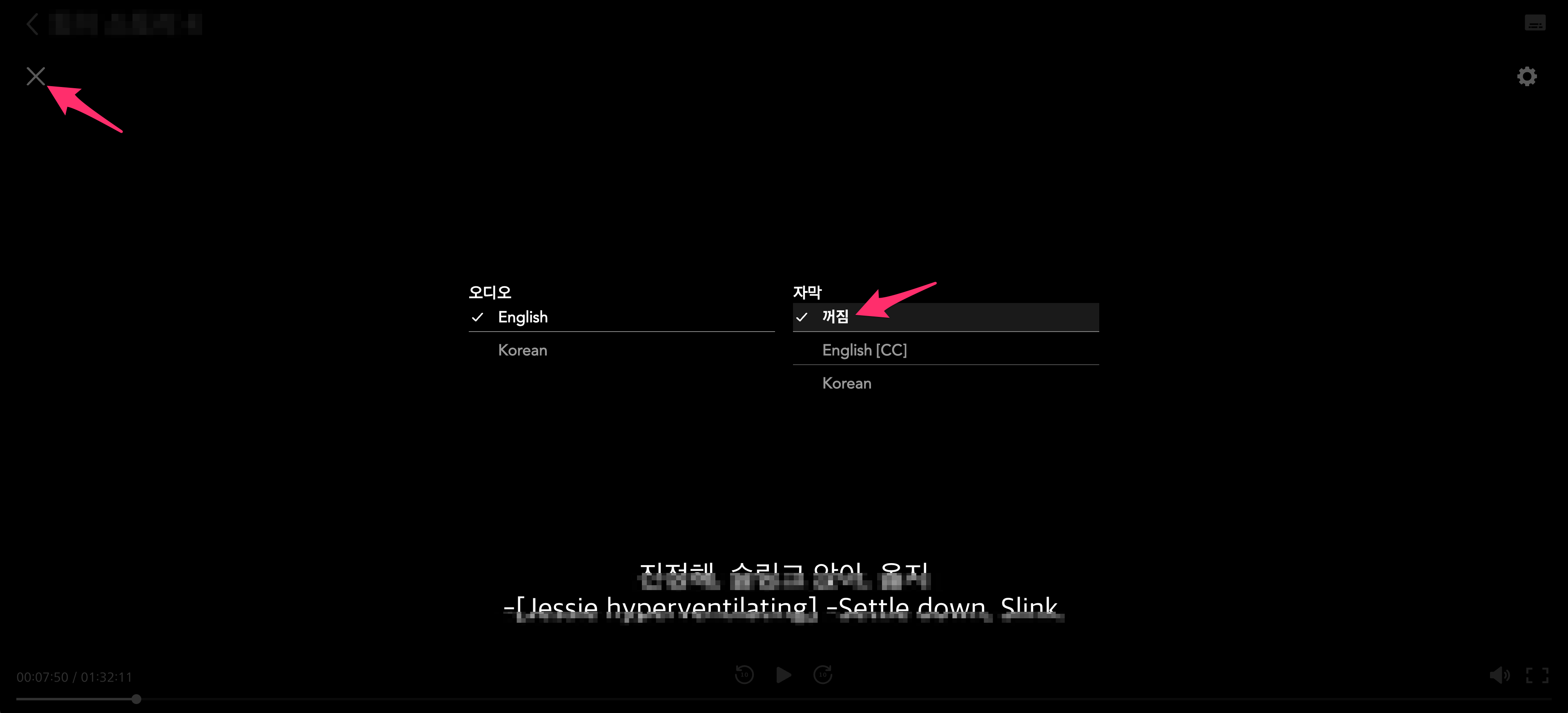 Dualsub 자막이 있기에 기존 자막은 꺼짐을 선택합니다.