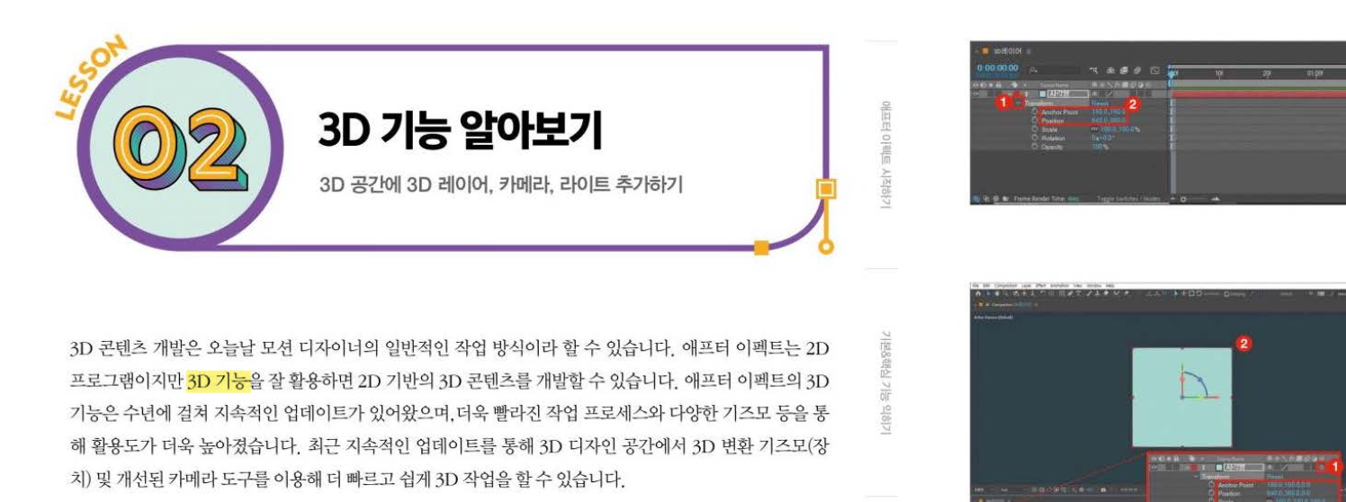 하지만 초반은 모션 그래픽에 필요한 다양한 개념과 이론을 자세히 설명하고 있습니다.