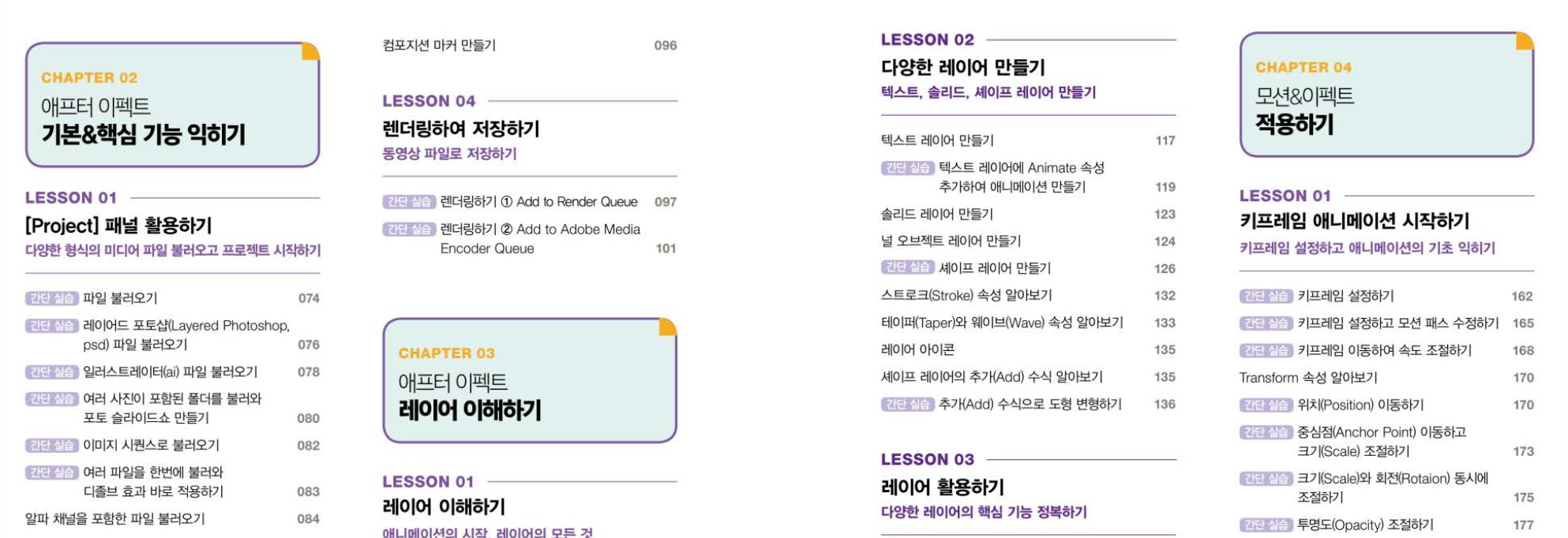 이 책을 통해서 애프터이펙트를 잘 공부했고 다양하게 적용 가능하게 되었습니다.