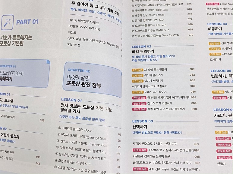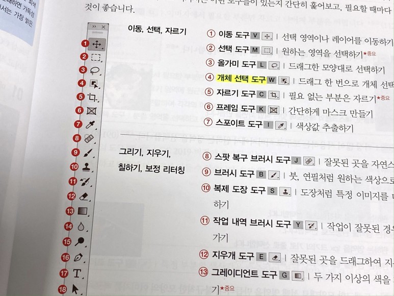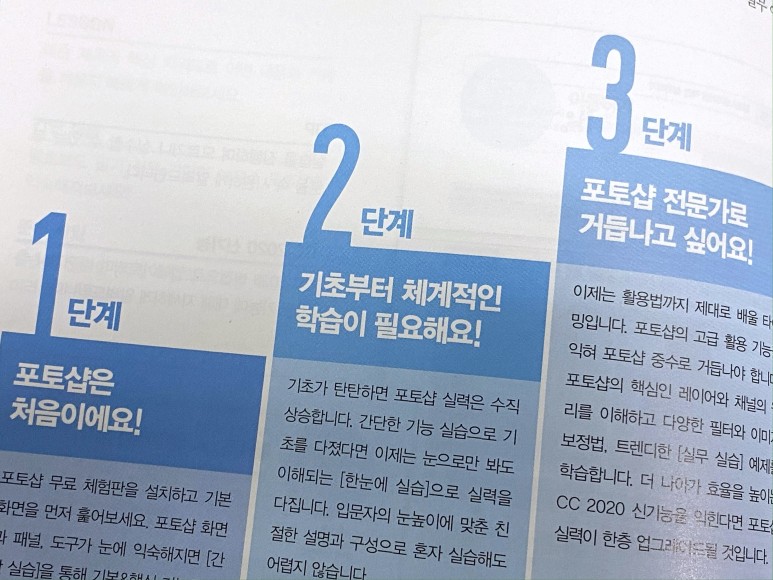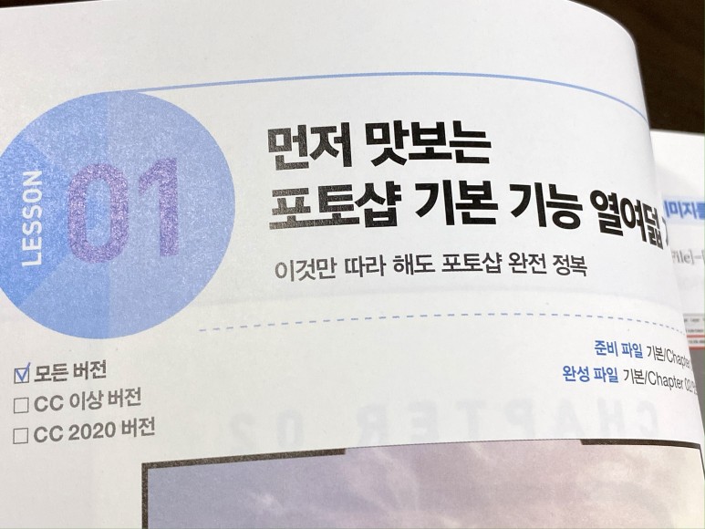 오랜 시간 포토샵을 사용하고 있지만 항상 사용하는 기술만 사용하고 추가되고 있는 기능이나 도구들을 크게 신경쓰지 않다가 최근에 다시 공부하고 싶은 마음에 포토샵 책으로 다시 공부하게 되었습니다.