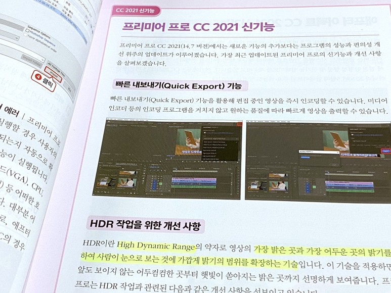 그리고 올해도 프리미어 프로 & 애프터 이펙트도 2021버전이 나왔고 신기능에 대해 책 초반에 설명합니다.