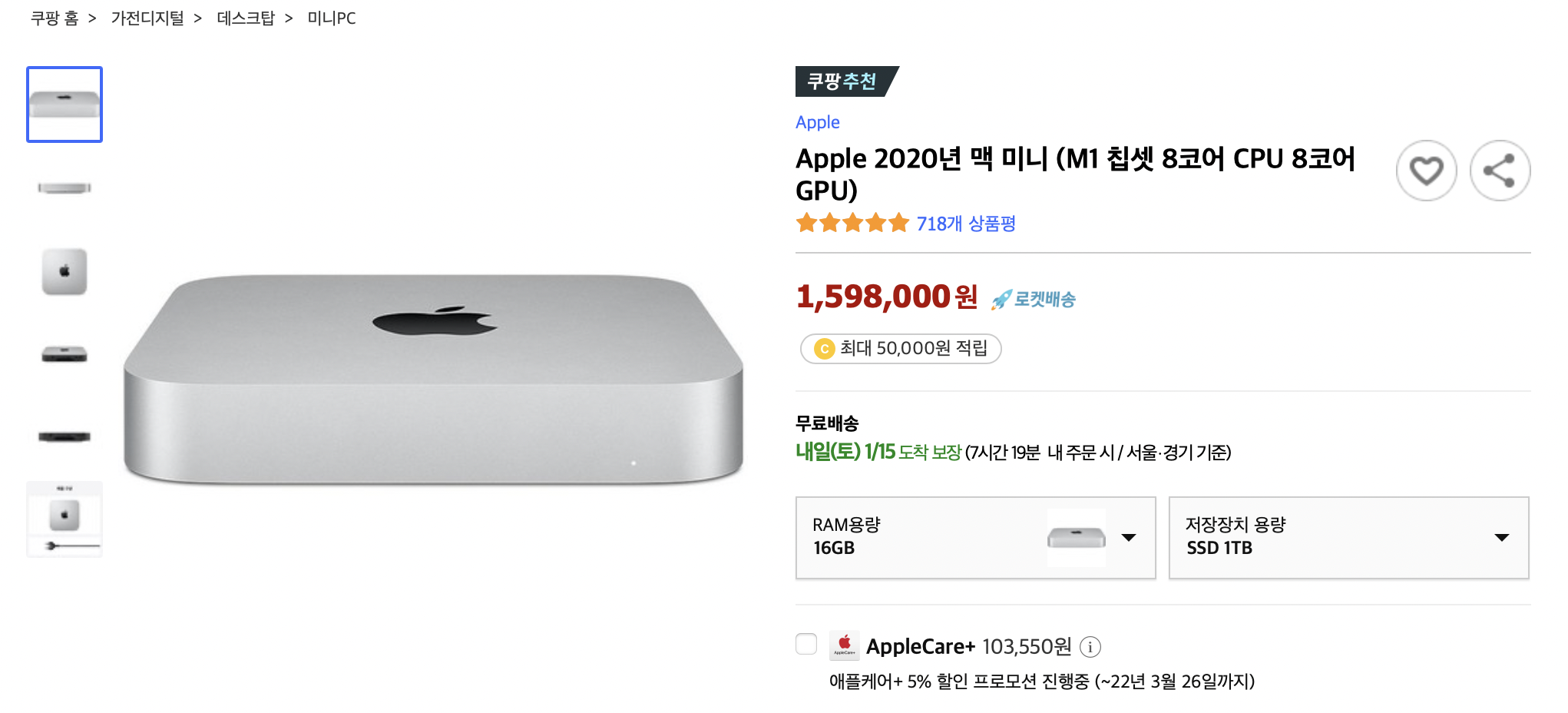 그래서 나중에 확장성도 생각하고 가성비까지 생각해서 맥미니로 결정하게 되었습니다.