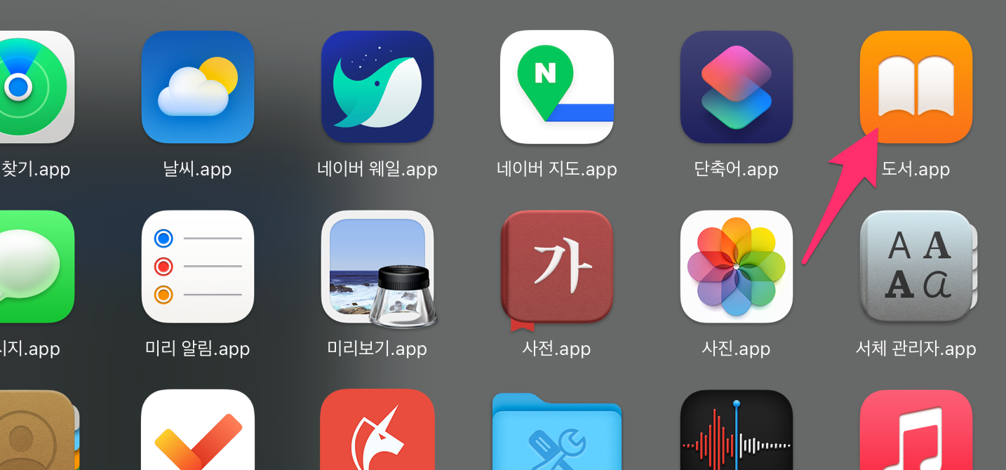 우선 맥을 가지고 있으시면 앱프로그램에서 도서앱을 선택합니다.