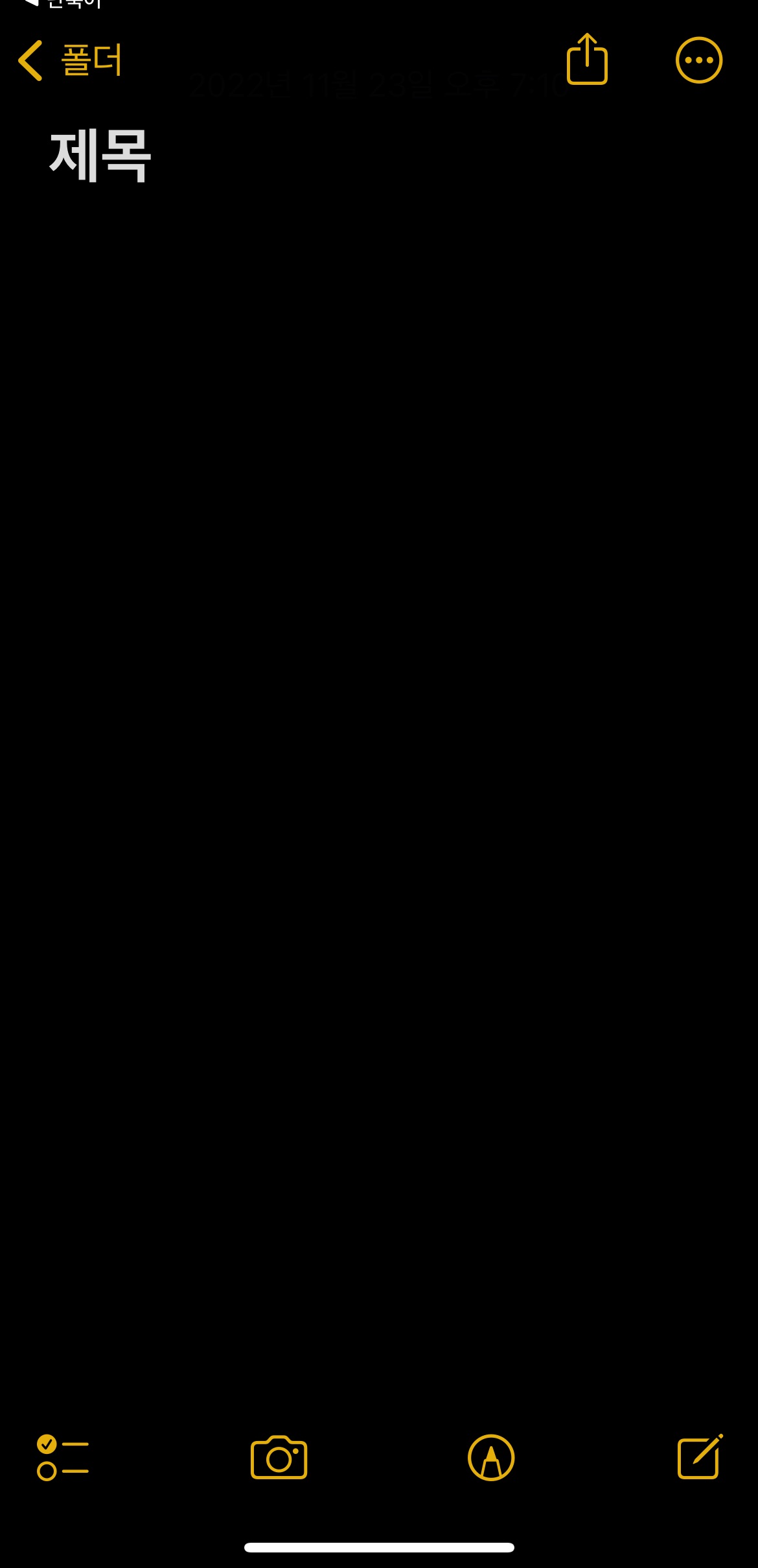 이 상태에서 그냥 완료해도 되지만 메모에 폴더를 만들었다면 저장할 폴더를 정하고 제목을 미리 입력해 놓으면 설정한 대로 새로운 메모가 생성됩니다.