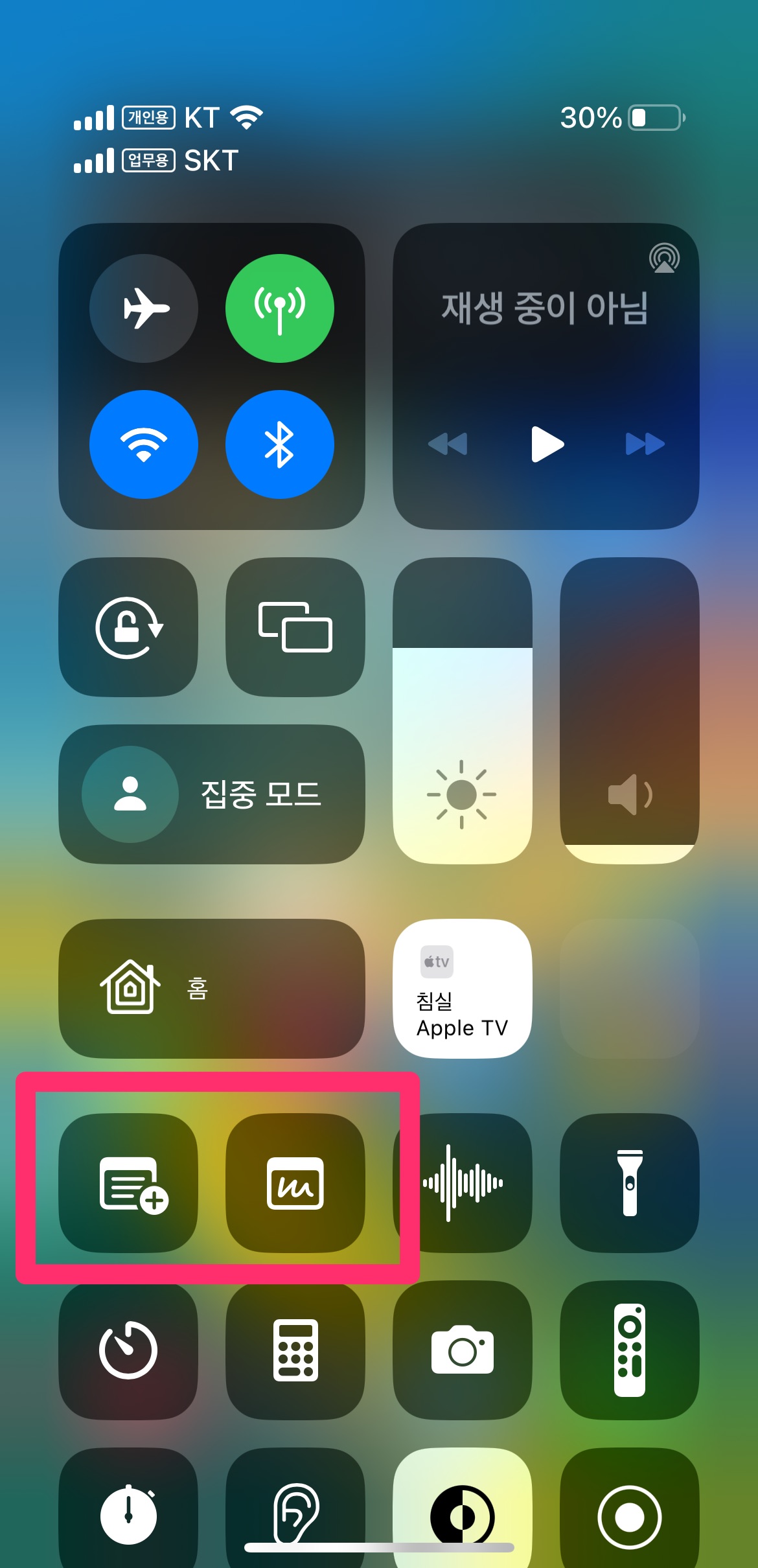 이렇게 하면 잠금 상태에서도 바로 제어 센터를 내리고 빠른 메모를 실행하기에 빠르고 쉽게 메모를 할 수 있습니다.