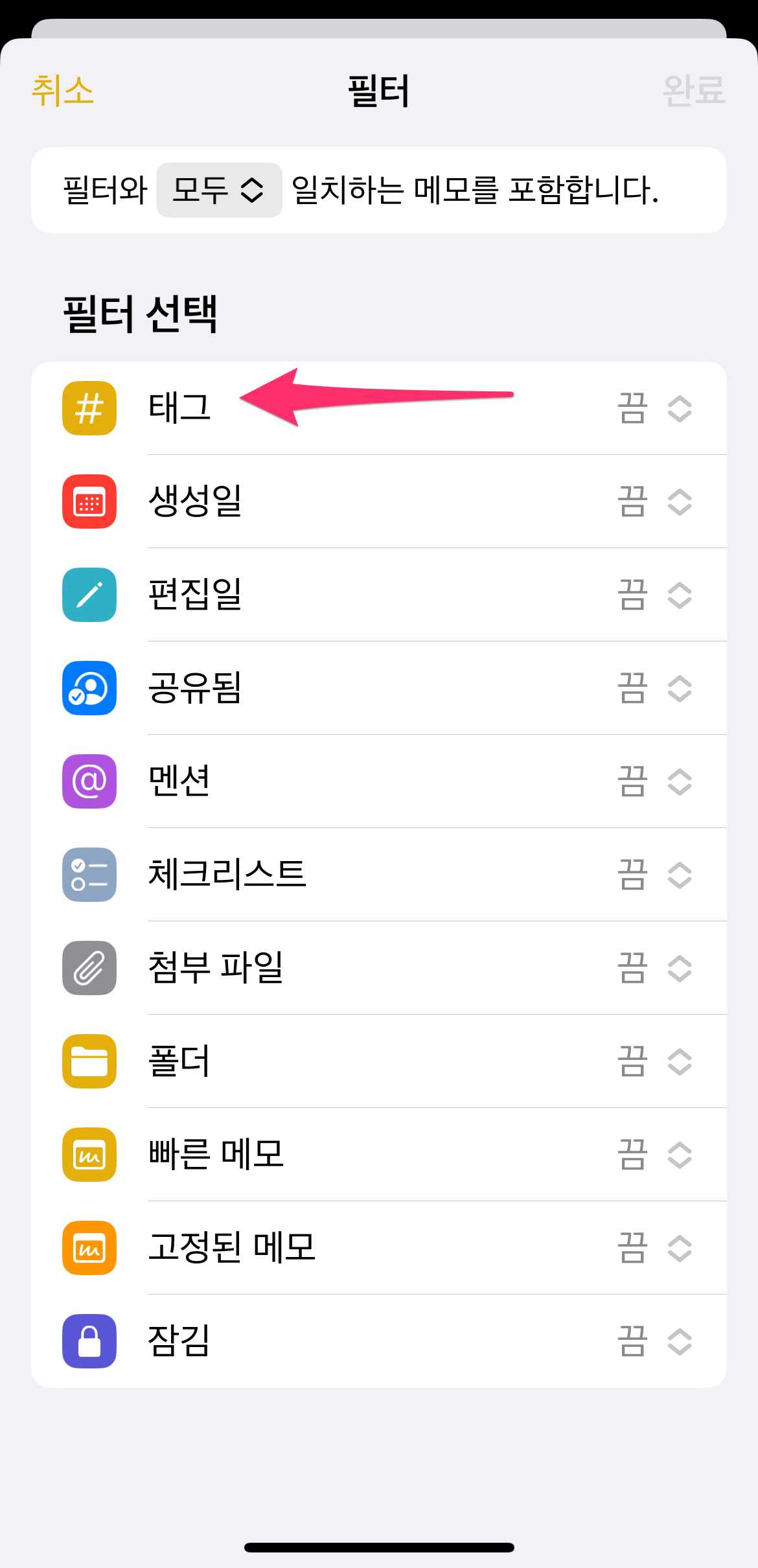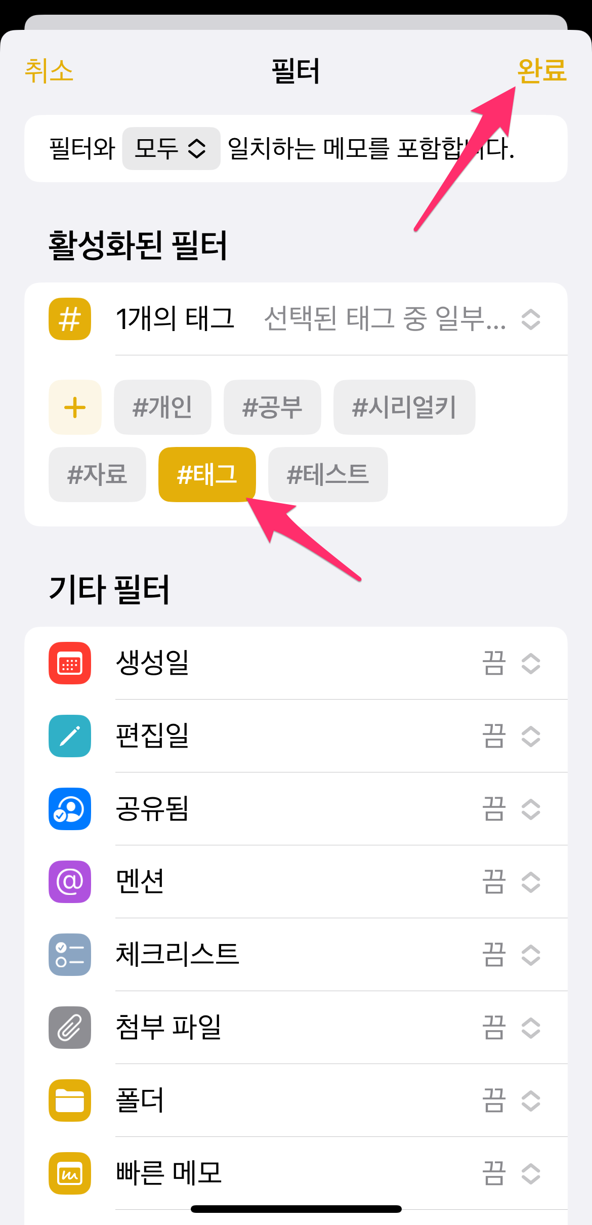 스마트 폴더는 여러 가지 조건을 종합적으로 적용된 메모들을 폴더로 정리하는 방법입니다.