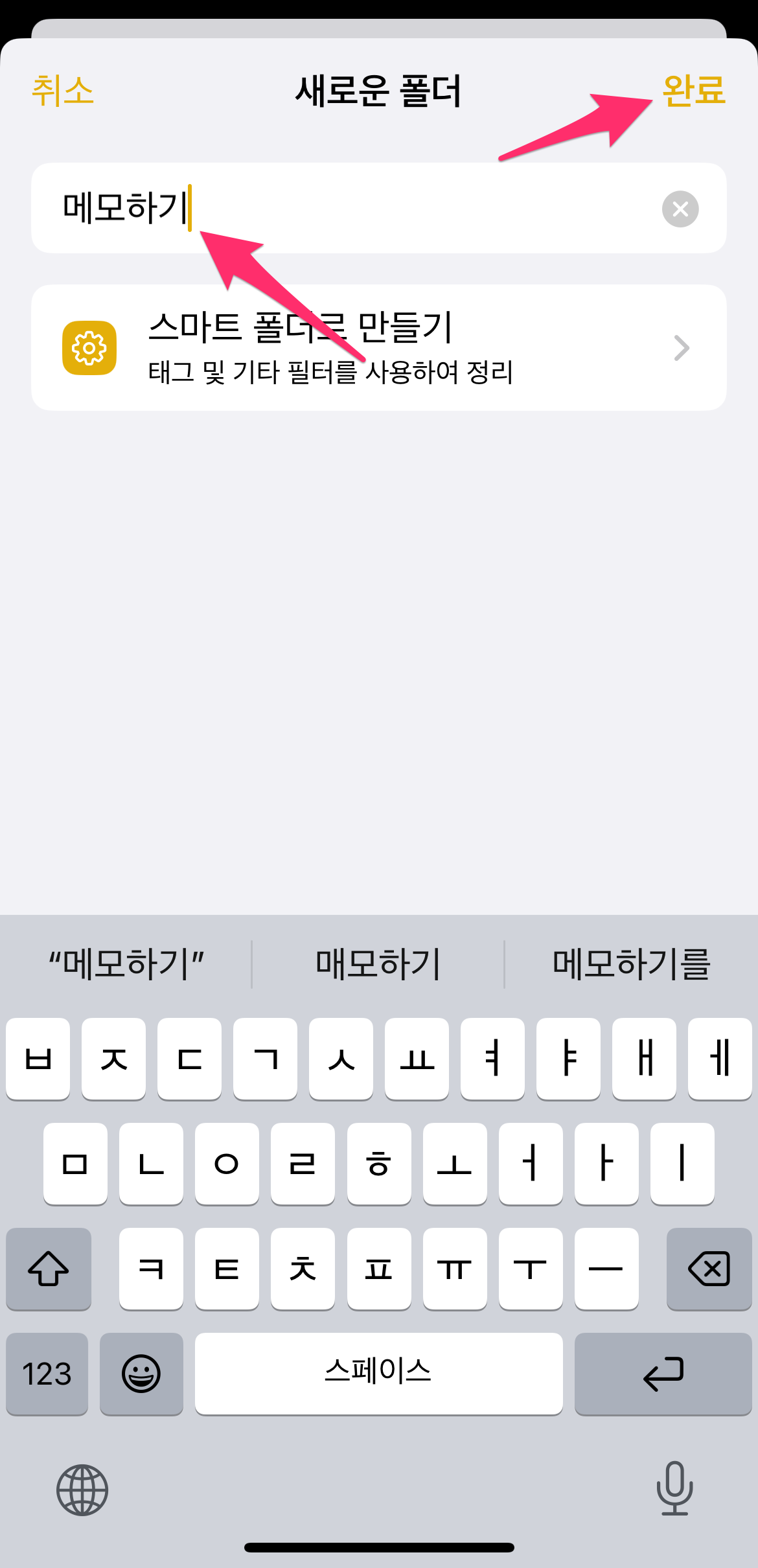 이렇게 폴더를 만들고 많은 메모를 일차적으로 분류하기에 정리하는 데 도움이 됩니다.
