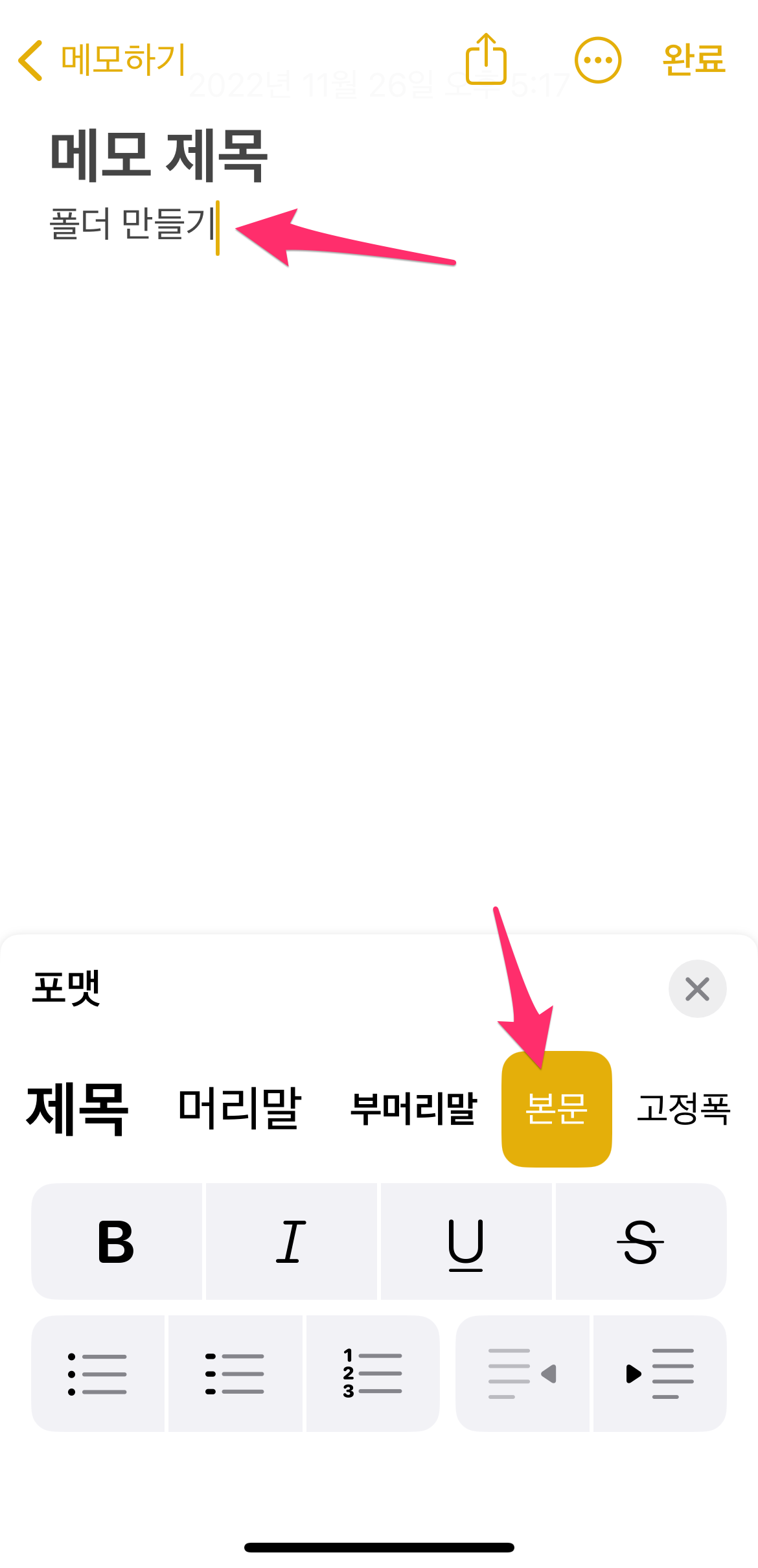 아이폰에서는 메모를 문서 앱으로 착각해서 너무 많은 시간을 투자하지 마시고 어느 정도 빠르게 메모하신 후에 정리하세요.