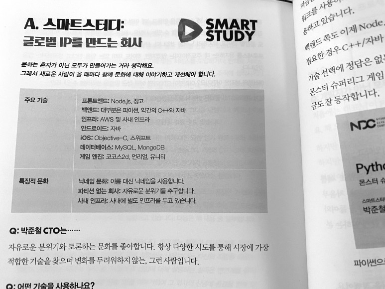 부록으로는 스타트업 CTO 인터뷰를 수록하여서 스타트업을 준비하는 사람들에게 앞서 소개한 서비스들을 어떻게 개발 환경이나 프로세스가 만들어지고 유지하기 위해서 어떤 노력들을 하는지 알 수 있습니다.