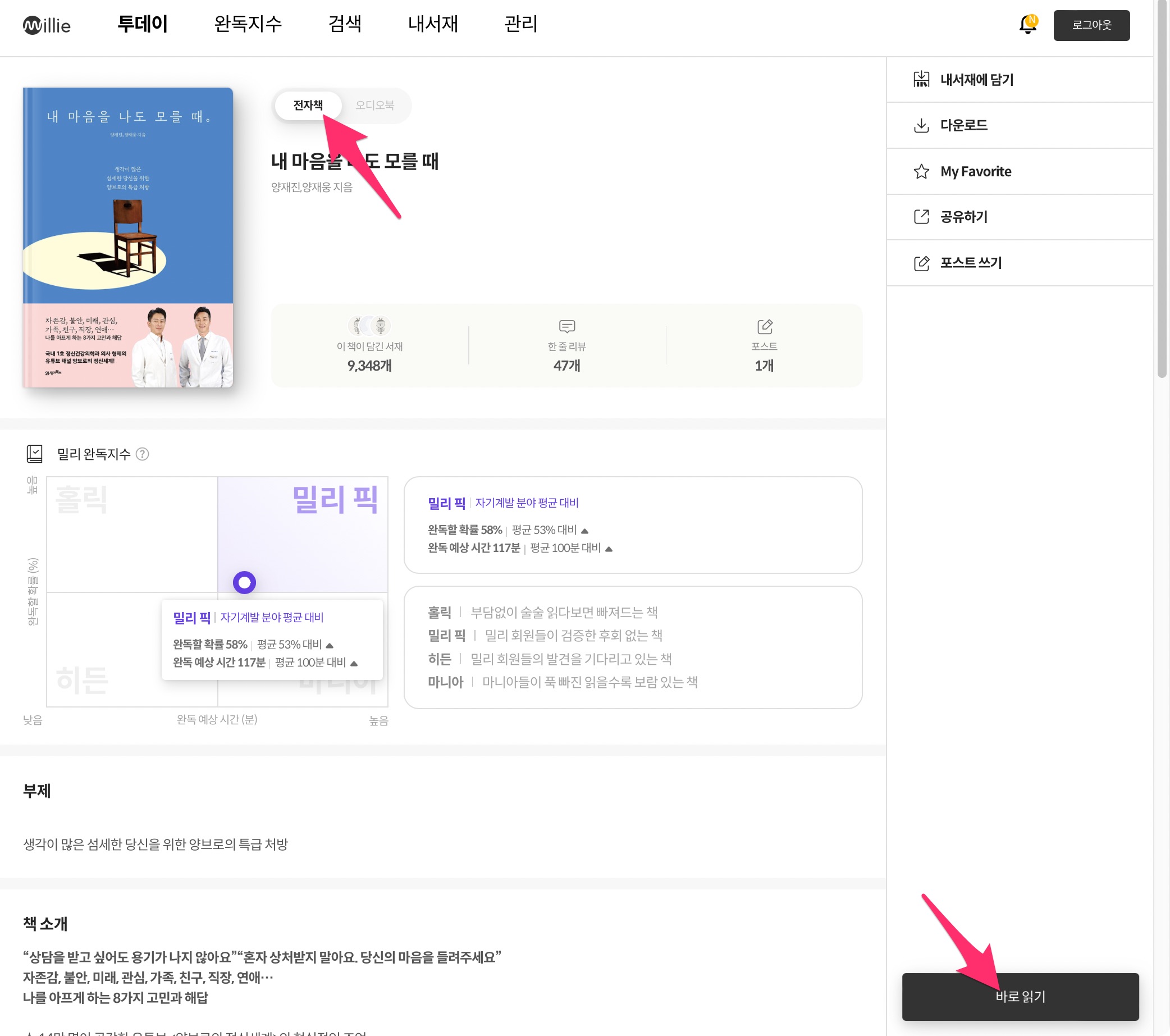 오디오북이 필요 없다면 밀리의 서재는 추천드리고 싶지 않습니다.