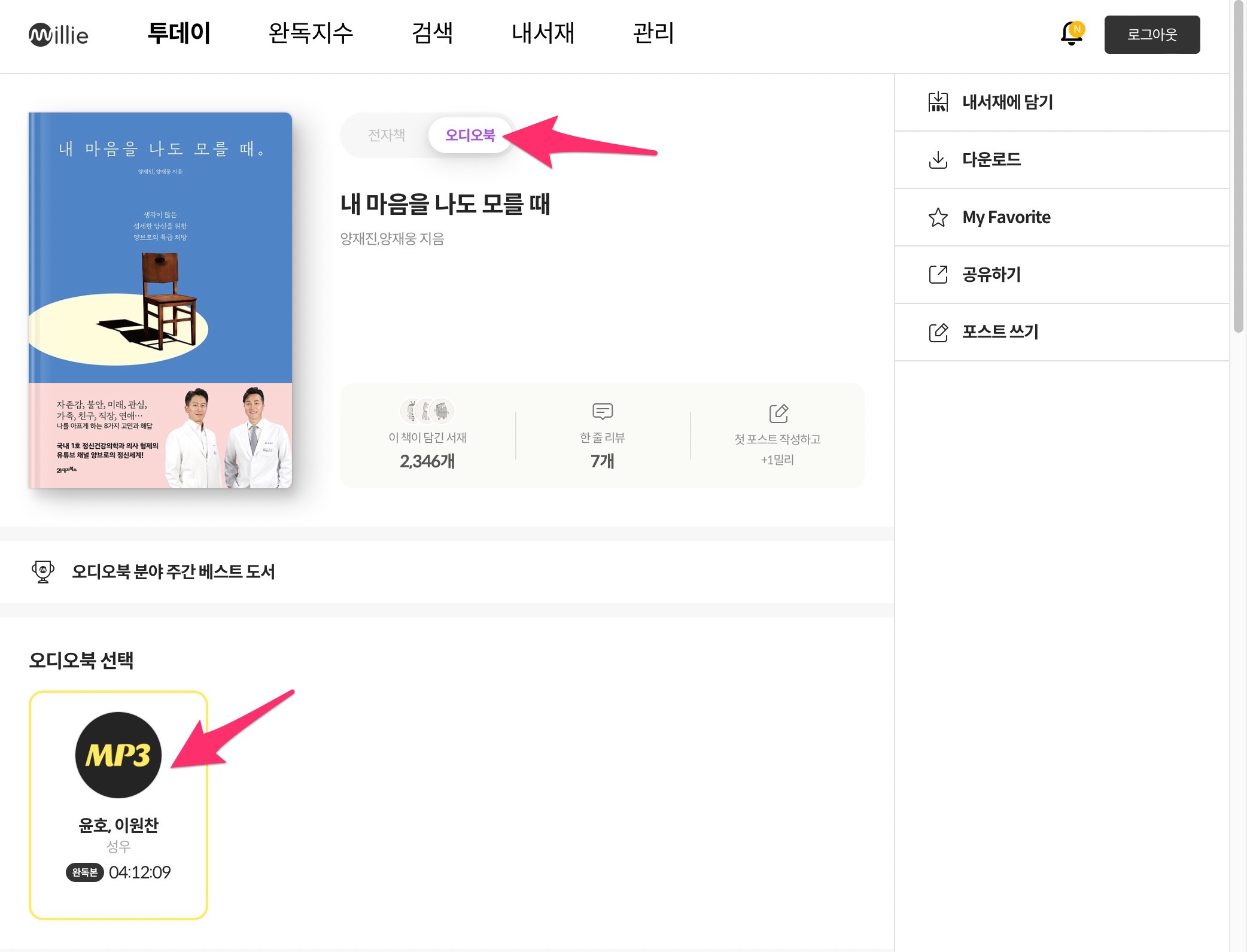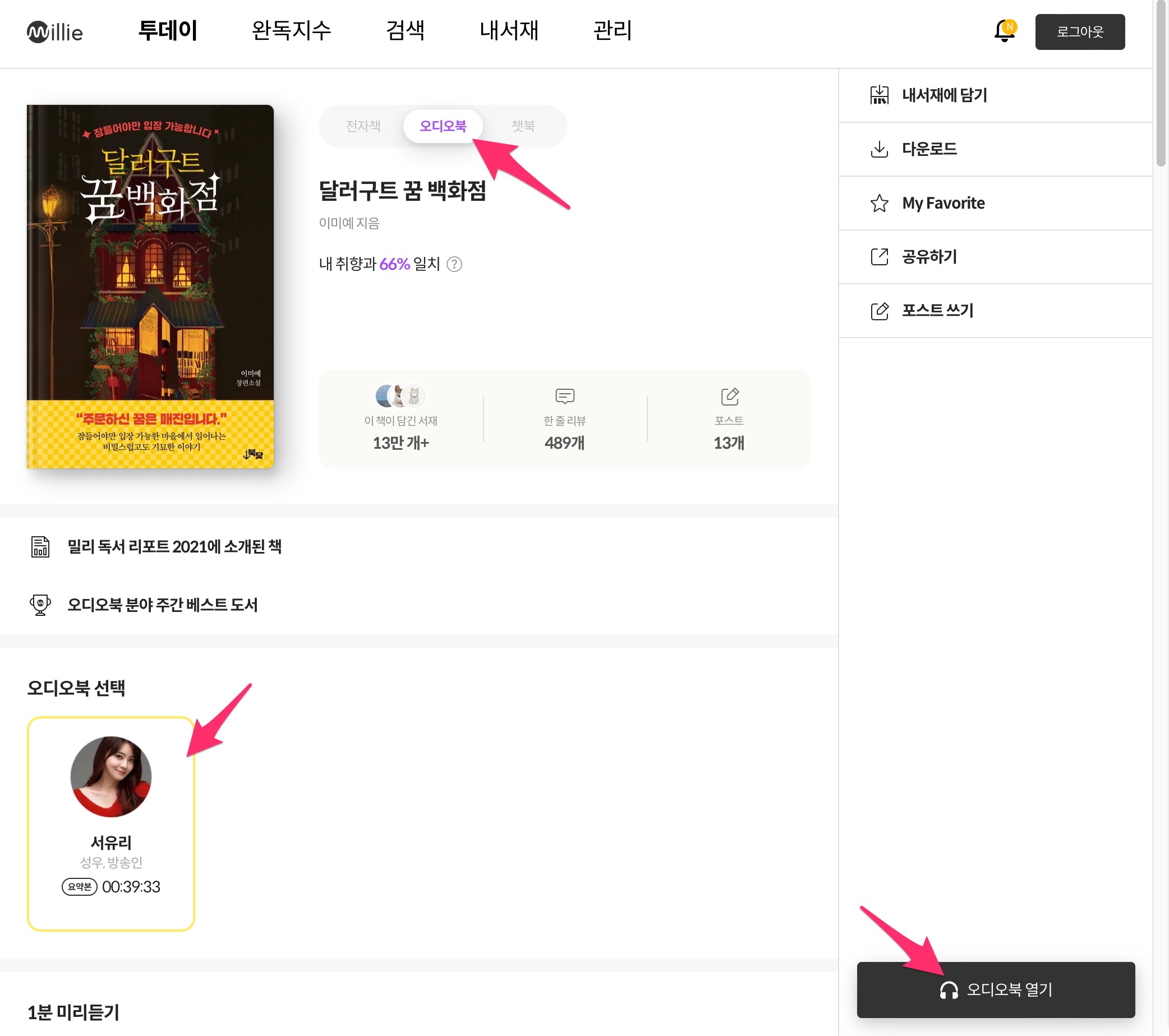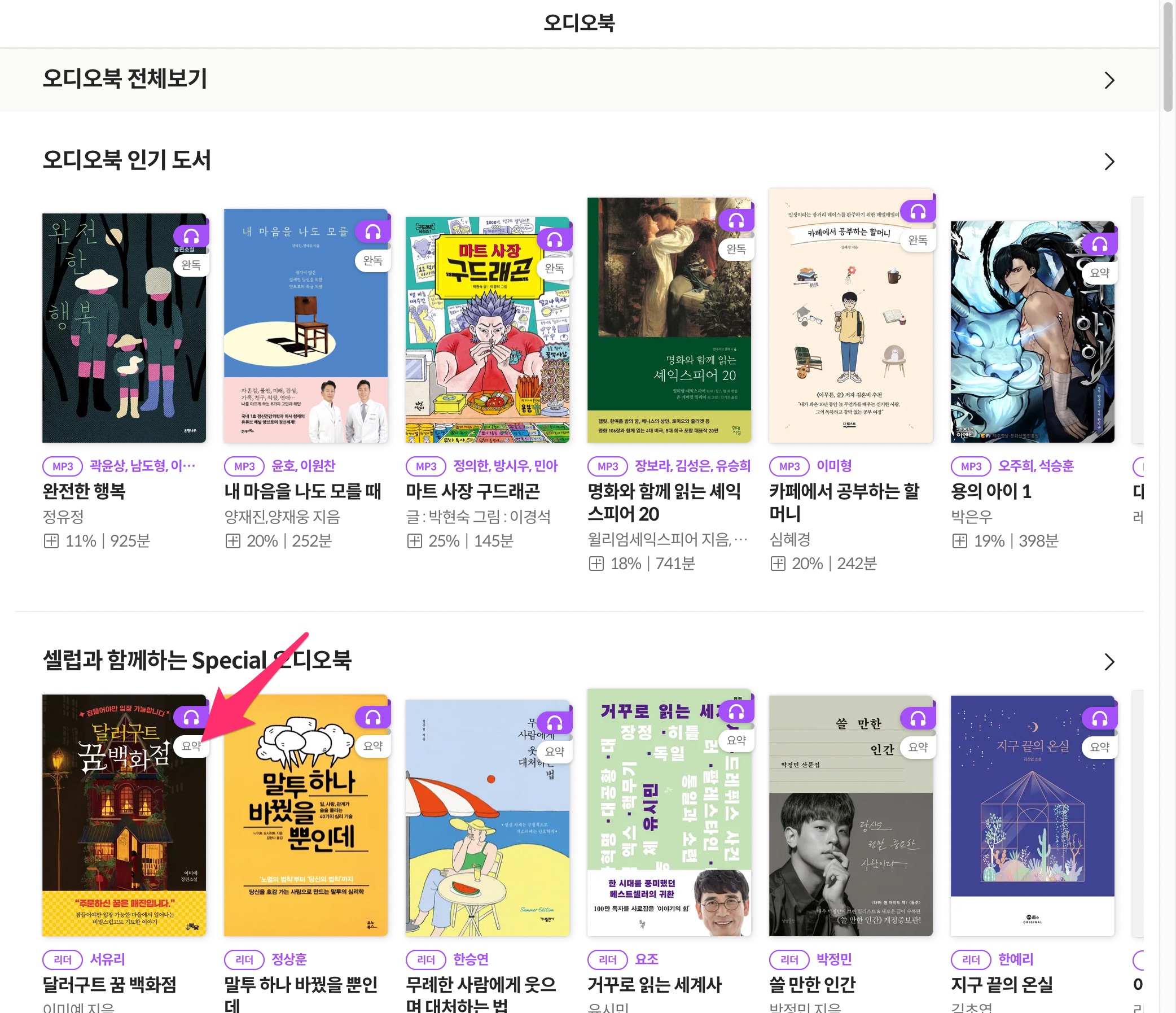 하지만 모든 책이 전자책과 오디오북을 서비스하는 것이 아니라 어떤 책은 오디오북만 서비스하는 경우도 있습니다.